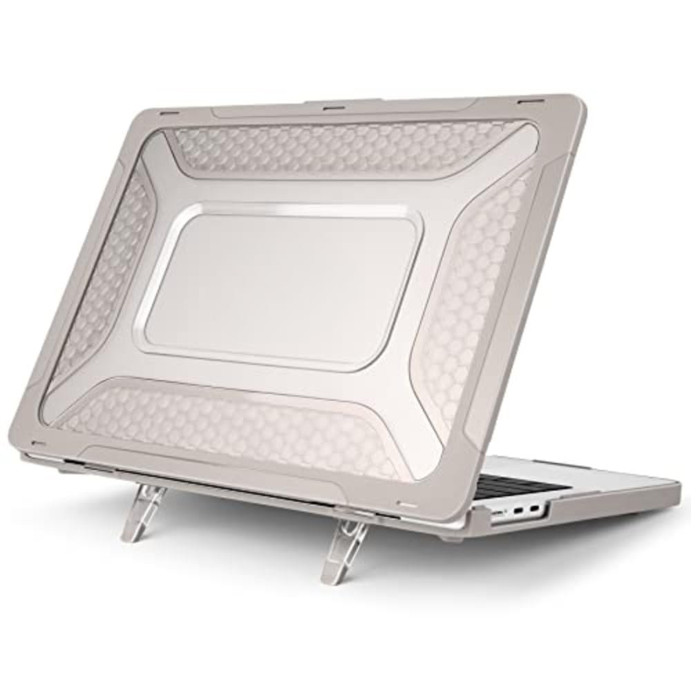 The built-in foldable kickstands provide an appropriate ergonomic viewing & typing angle, give you a better visual experience. Engineered shock-absorbing beveled ridges honeycomb design wraparound TPU bumper heavy duty hard shell, provides ultimate protection for your laptop against scratches, drops, accidental scuffs and other damages.