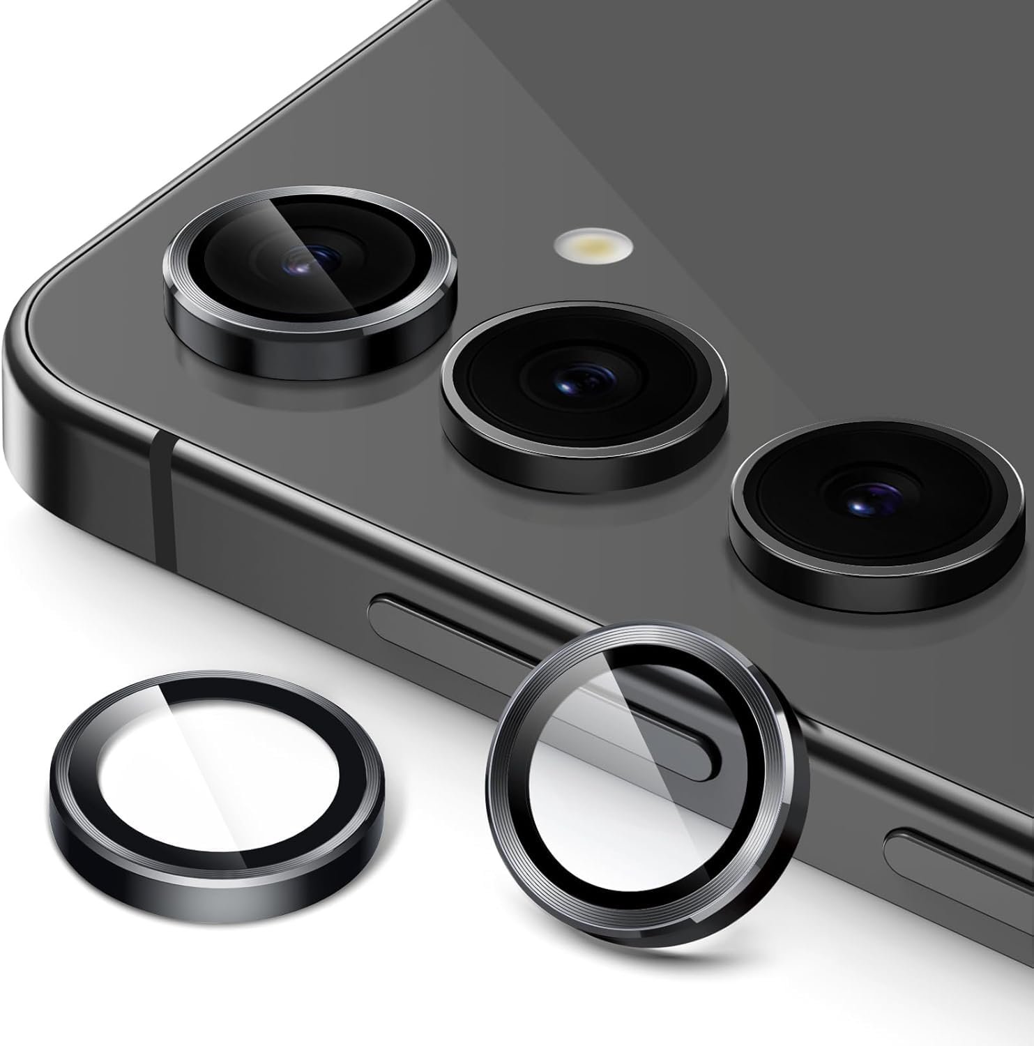 Tempered Glass Camera Lens Protector For Samsung Galaxy S24 FE 5G 9H Hardness, Full Coverage Anti Scratch Camera Metal Ring (Samsung S24 FE 5G, Black)