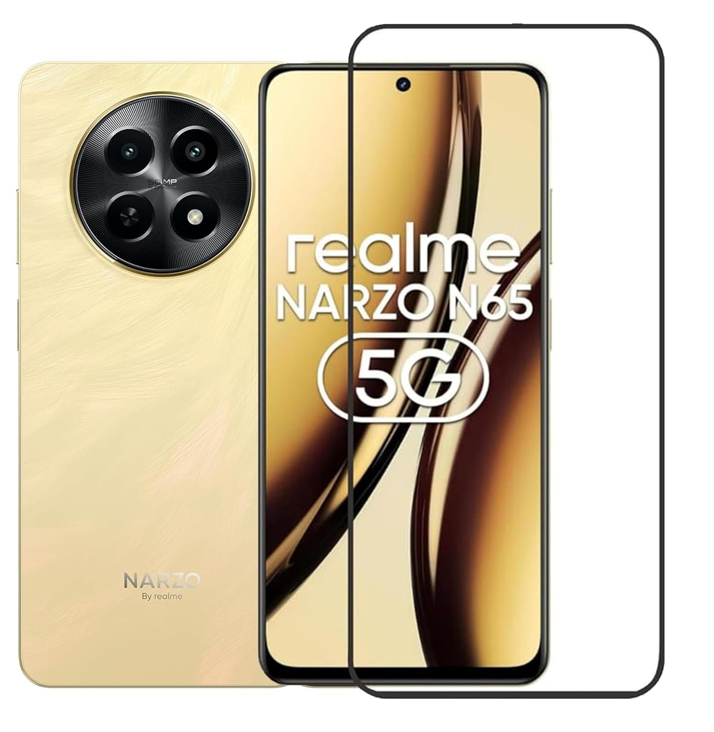 Tempered Glass Screen Protector Compatible for realme NARZO N65 5G Black with Edge to Edge Coverage and Easy Installation kit