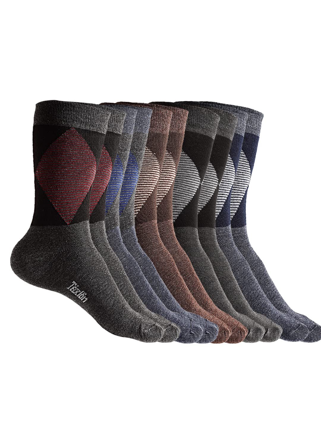 Texlon Men’s Woolen Calf Length Thick Winter Wear Socks (Multicolor, Free Size) – Pack of 5 Pairs
