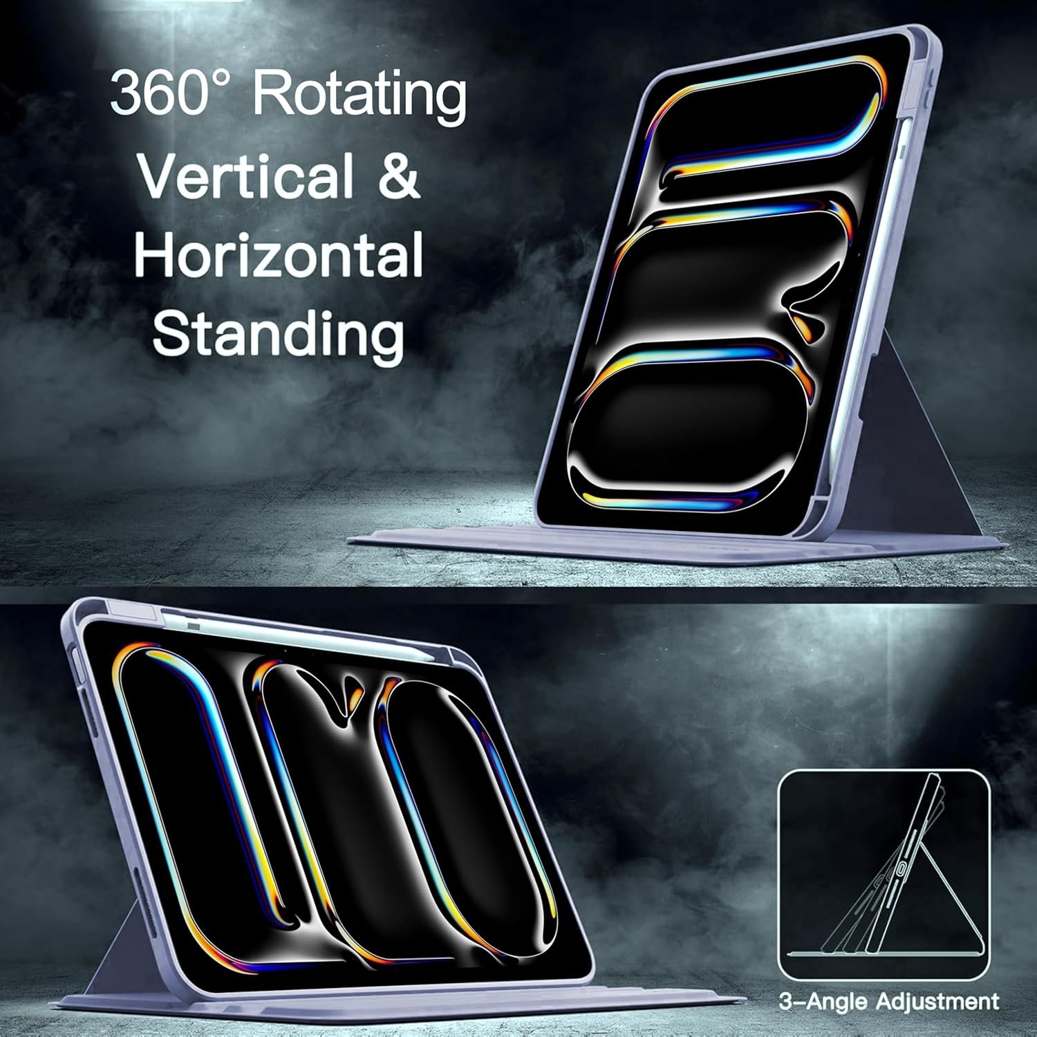 360 Degree Rotating : The case coming with a 360 Degree Rotation swivel design stably supports your iPad Pro 11 2024 M4 5th Gen whether in a portrait or landscape stand mode in many angles with 3 anti-slip deep grooves. Functional & convenient.