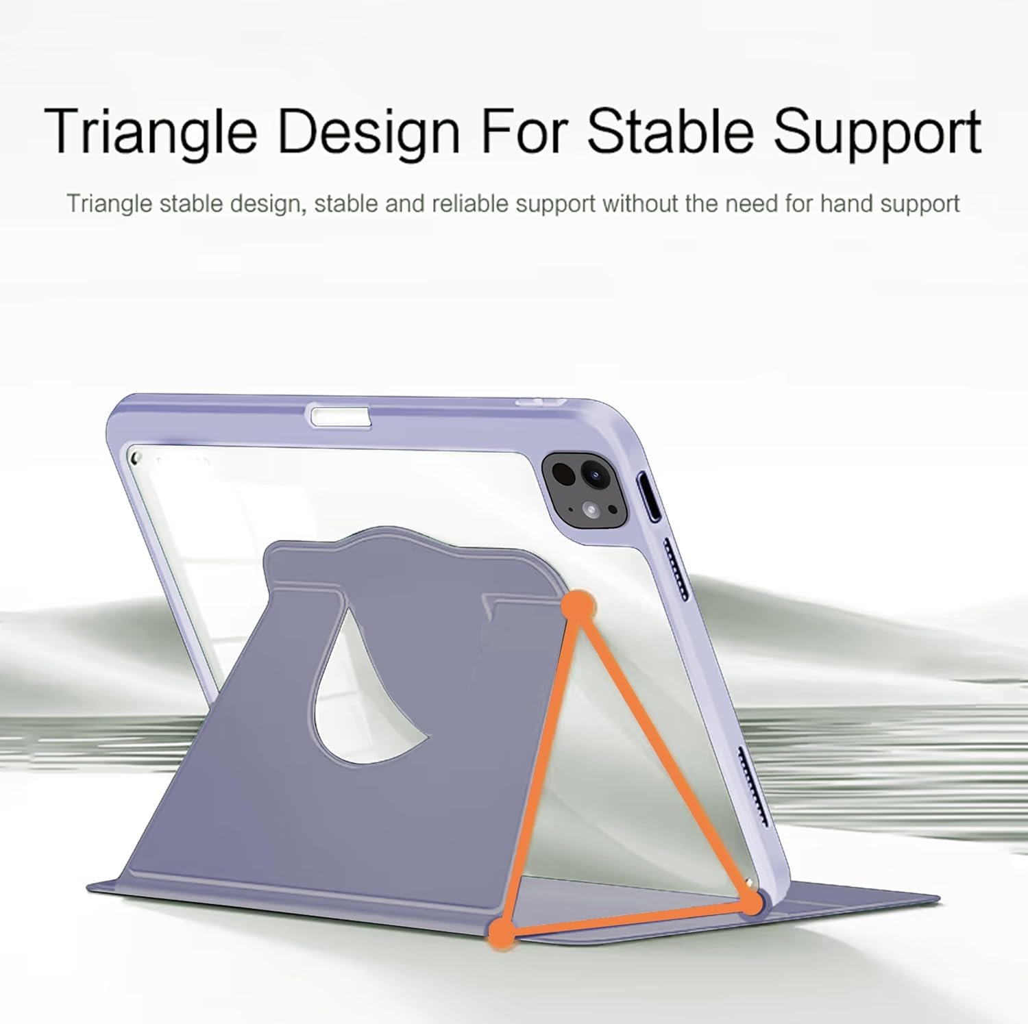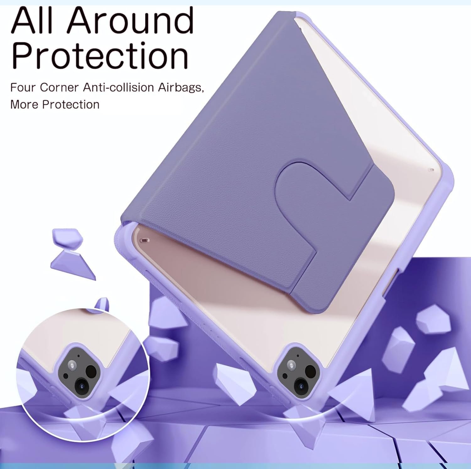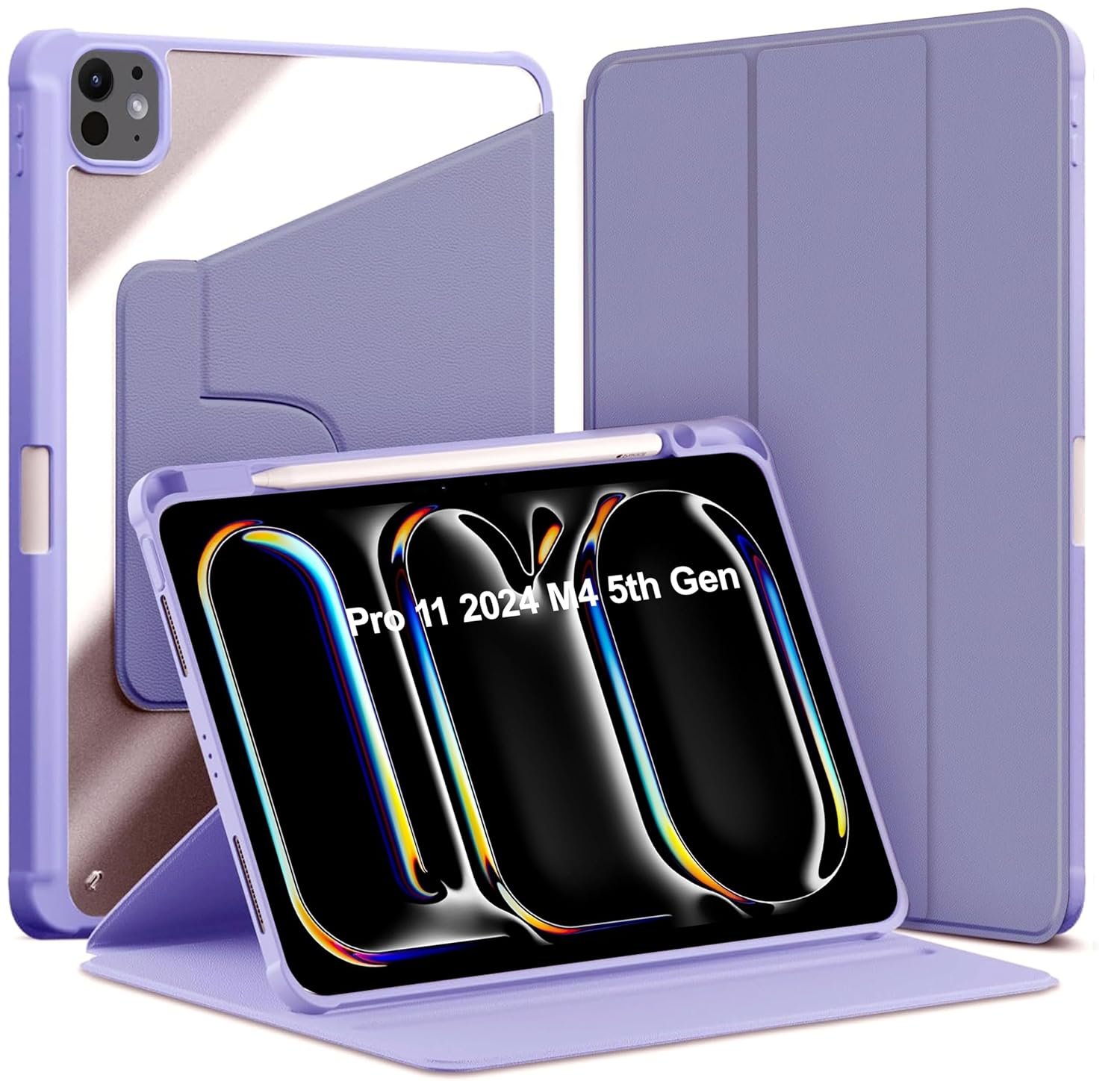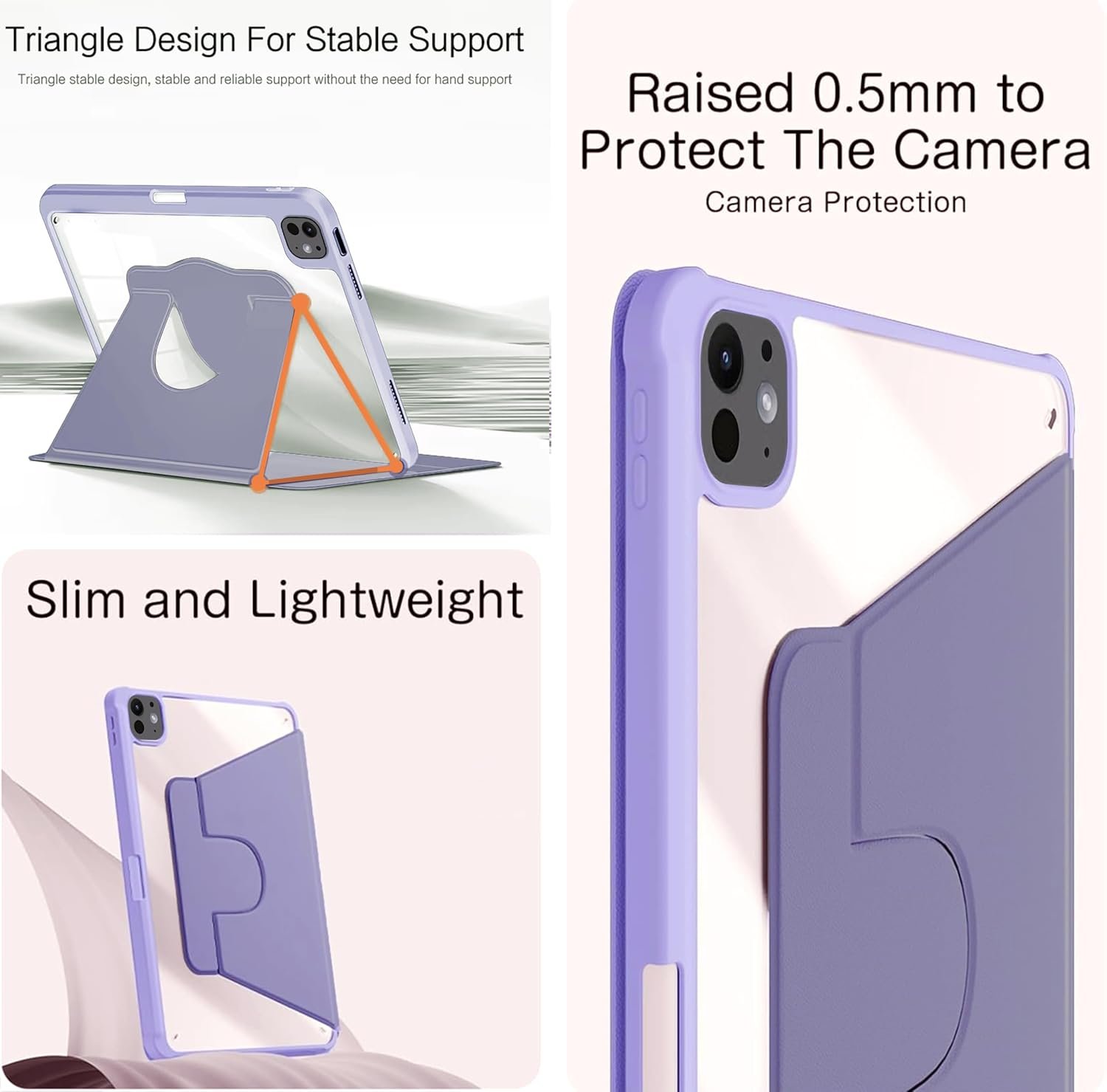 TGK Rotating Case for iPad Pro 11 2024 M4 5th Gen A2836 A2837 A3006 with Pencil Holder 360 Degree Rotation Protective Trifold Stand Cover Clear Back (Lavender)