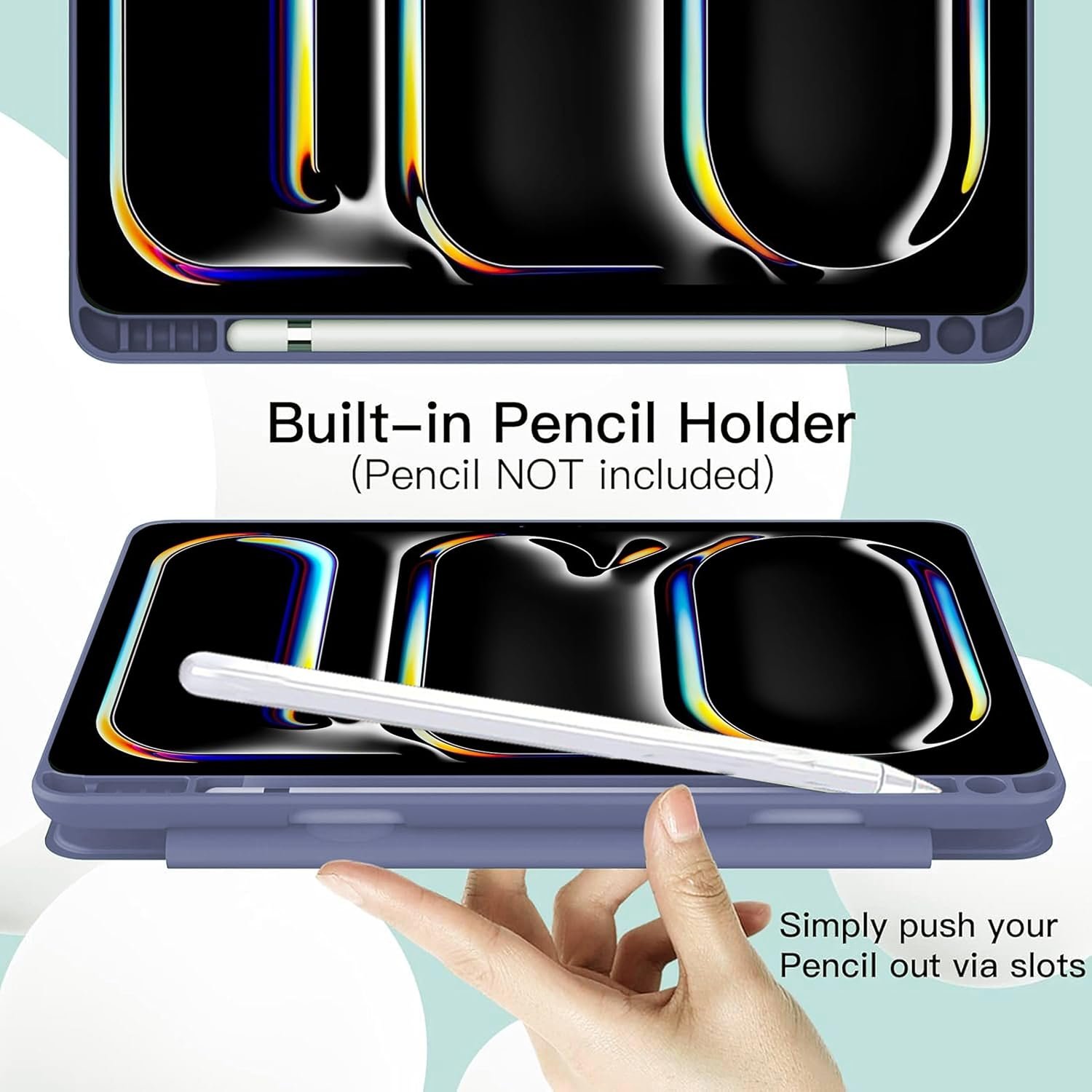 Built-in Pencil Holder : You can always store your Pencil in the Protective Case, use it with your iPad Pro 11 2024 M4 5th Gen anywhere, & surely it is easy to take out your Pencil via a thoughtful slot [Note: Pencil Not Included]
