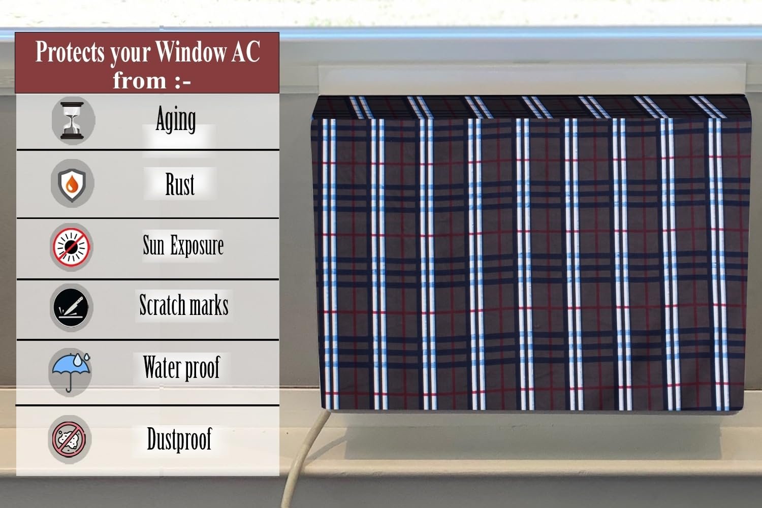 The Furnishing Tree window ac cover suitable for Carrier 1.5 Ton ESTRA NEO R32 CAW18SN5R39F0, Checkered Pattern Grey Color Elastic fit Cover for front and rear Of Window Ac