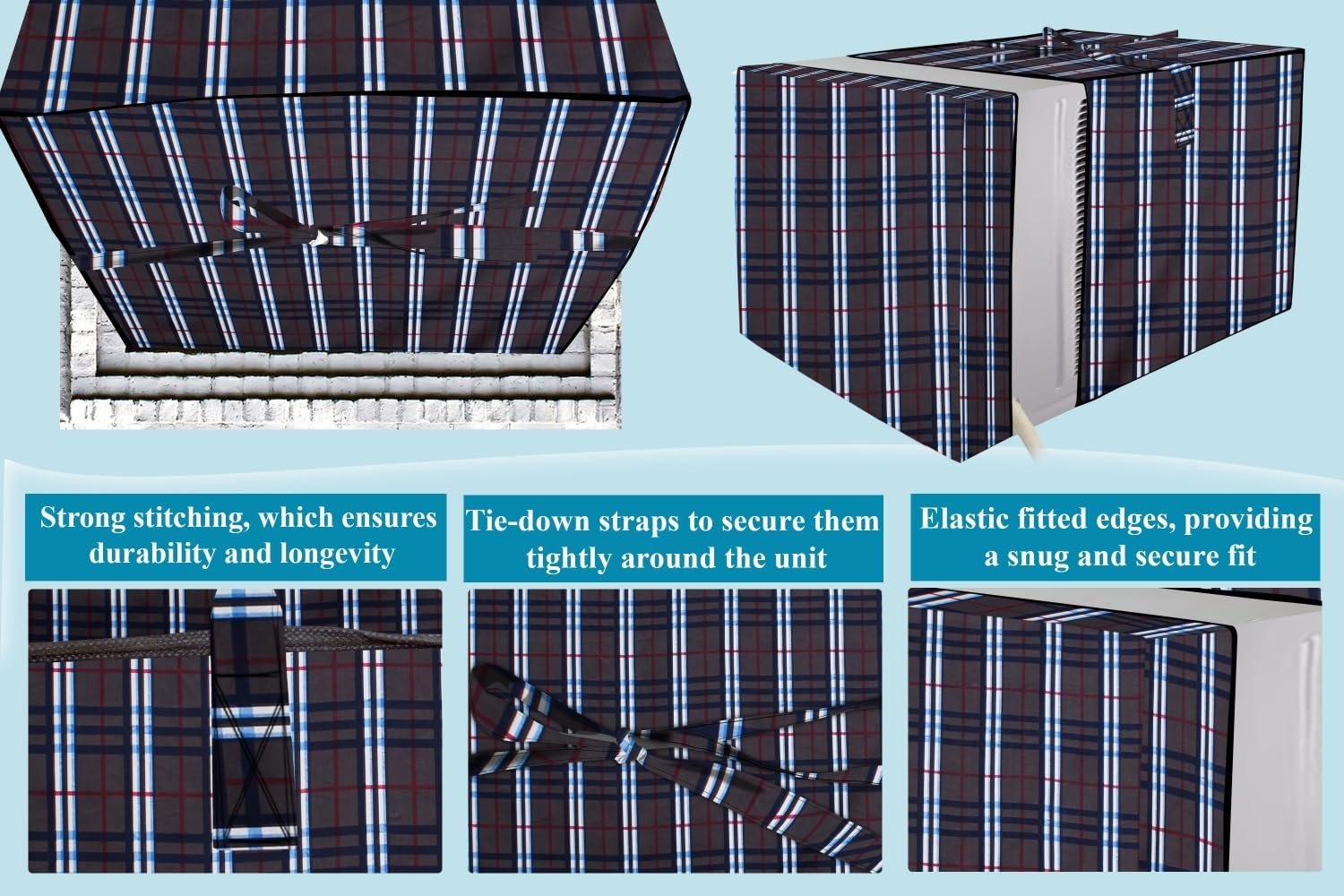 Window AC covers are specially designed for specific brands and models of window AC units, featuring an elastic fit with additional tie-knot strings for extra security.
