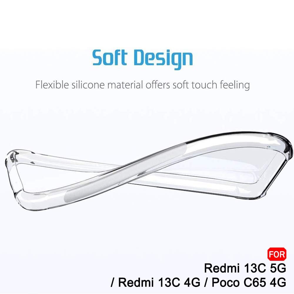 TheGiftKart Back Cover For Mi Redmi 13C 4G / 13C 5G / Poco C65 / Poco M6 5G | Shockproof Clear Soft TPU Case | Cushioned Edges for Ultimate Protection for Redmi 13C 4G/13C Back Case (TPU, Transparent)