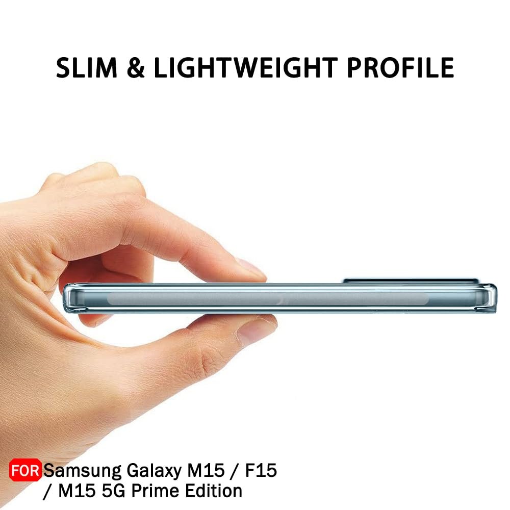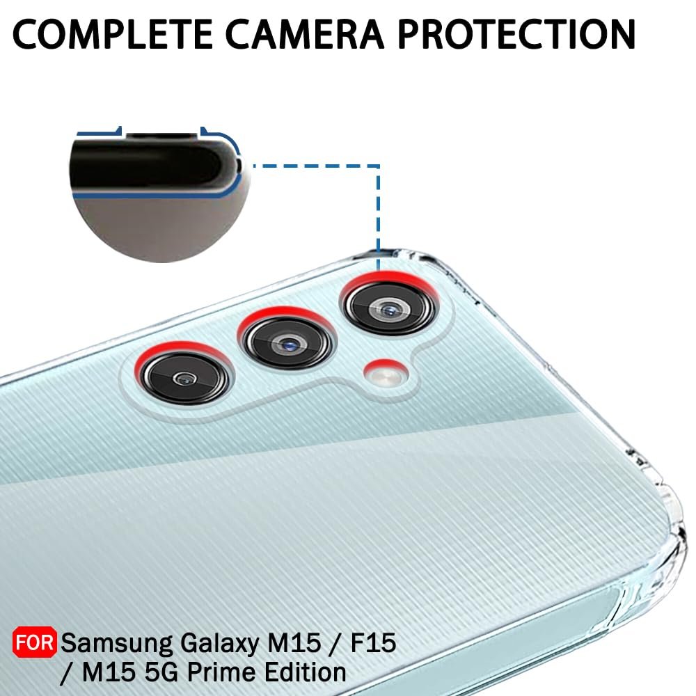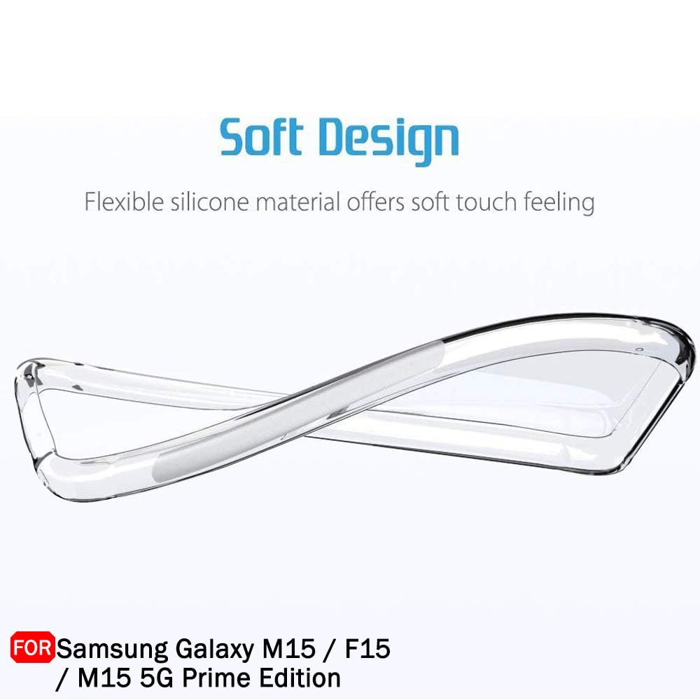 TheGiftKart Back Cover Soft Case for Samsung Galaxy M15 / F15 / M15 5G Prime Edition | Best Camera Protection | Inbuilt Dust Plugs & Anti-Slip Grip | Ultra Clear Back Cover (Silicone, Transparent)