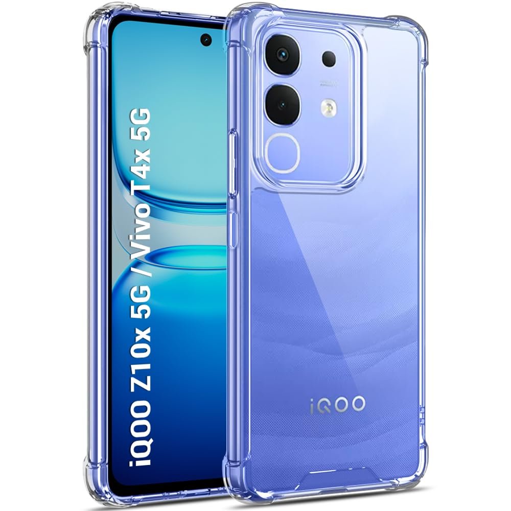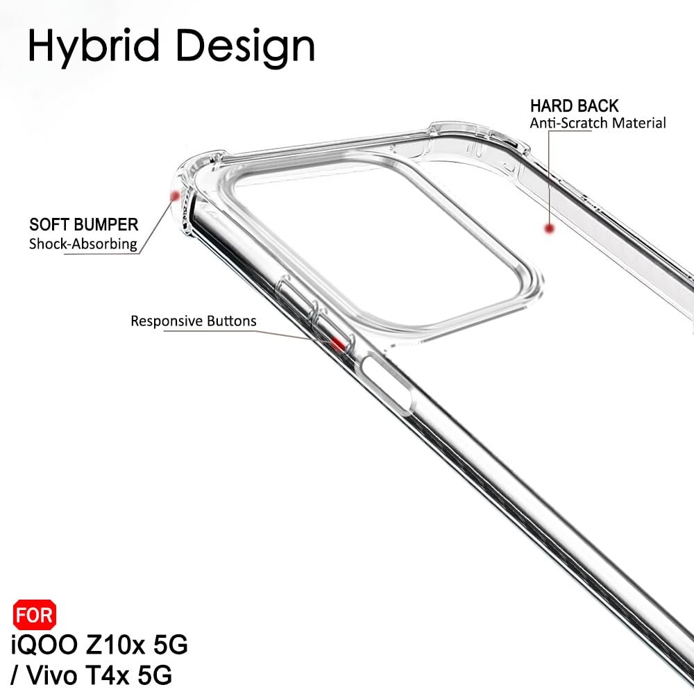 TheGiftKart Crystal Clear Back Cover Case for iQOO Z10x 5G / Vivo T4x 5G | 360 Degree Protection | Shock Proof Design | Transparent Back Cover for iQOO Z10x / Vivo T4x (PC & TPU, Transparent Bumper)