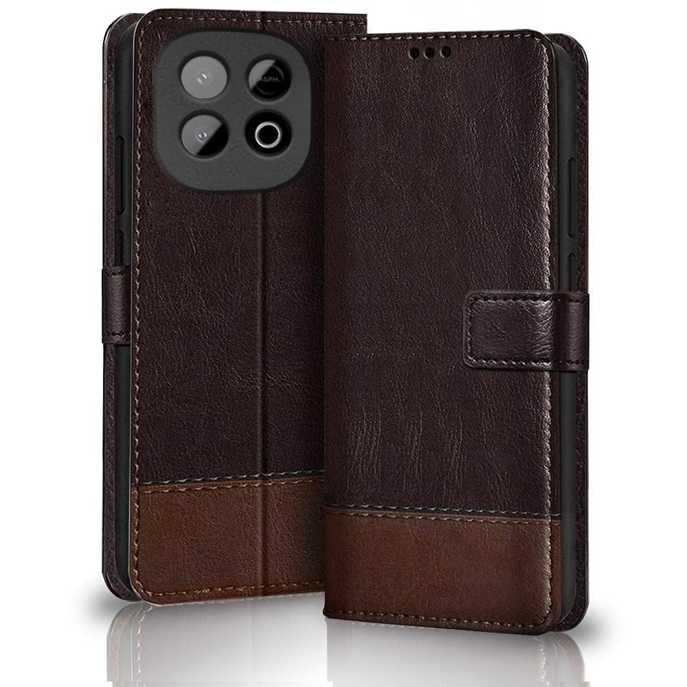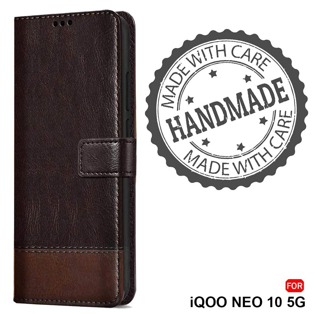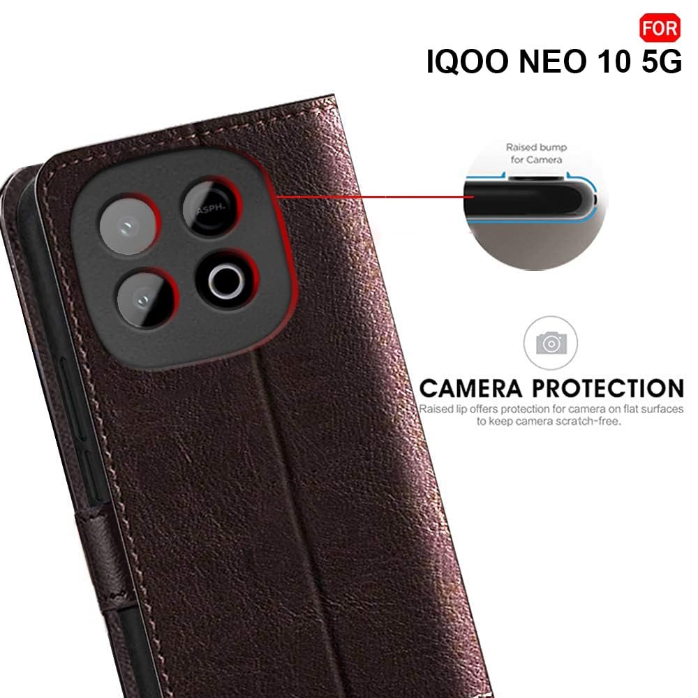 TheGiftKart Flip Back Cover Case for iQOO Neo 10 5G | Dual-Color Leather Finish | Inbuilt Stand & Pockets | Flip Back Case Cover for iQOO Neo 10 5G (Faux Leather, Coffee & Brown)