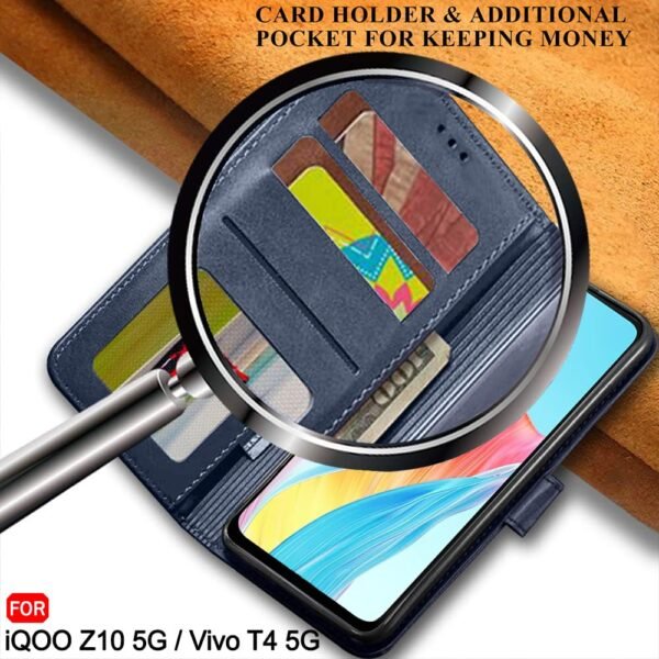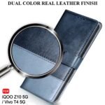 TheGiftKart Flip Back Cover Case for iQOO Z10 5G / Vivo T4 5G | Dual-Color Leather Finish | Inbuilt Stand & Pockets | Wallet Style Flip Back Cover for iQOO Z10 / Vivo T4 (Faux Leather, Blue & Sky)