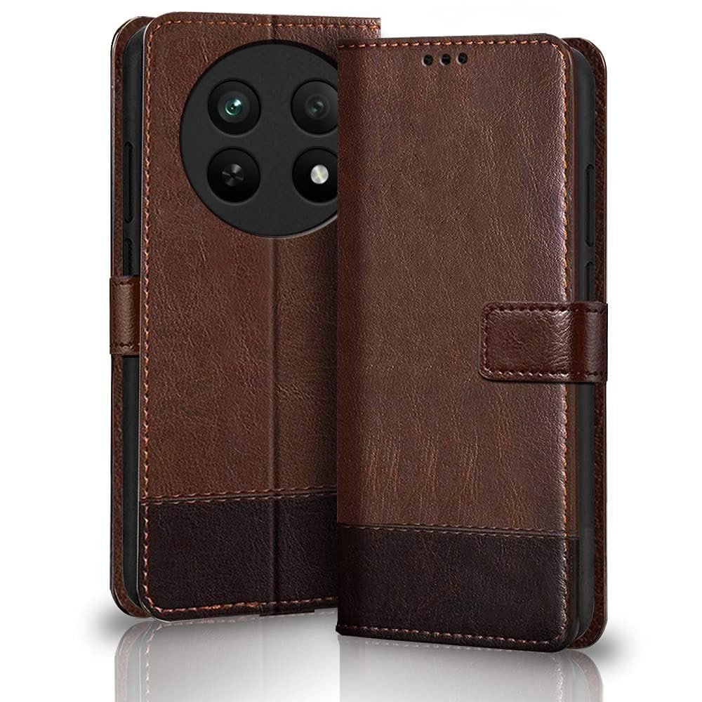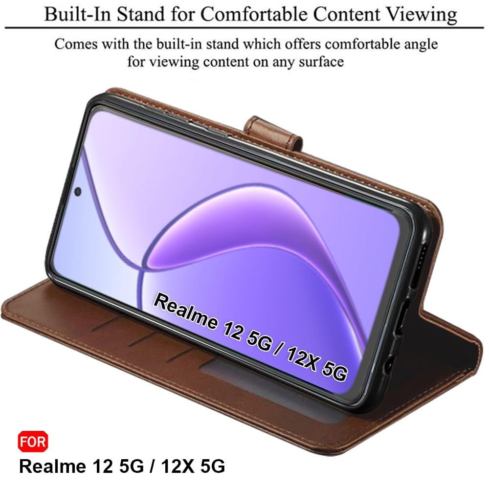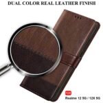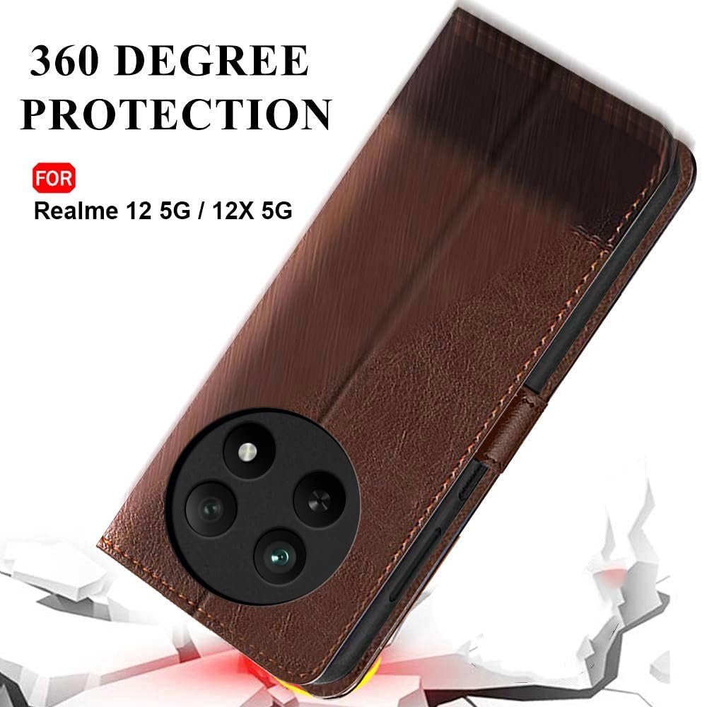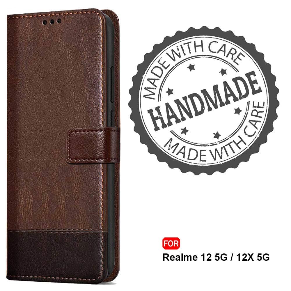 TheGiftKart Flip Back Cover Case for Realme Narzo 70x 5G / N65 / Realme 13/12 / 12X 5G / C65 5G | Dual-Color Leather Finish | Inbuilt Stand & Pockets | Flip Back Cover (Faux Leather, Brown & Coffee)