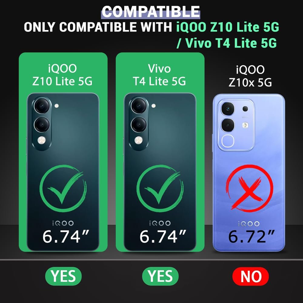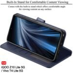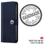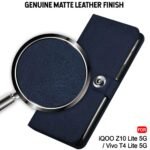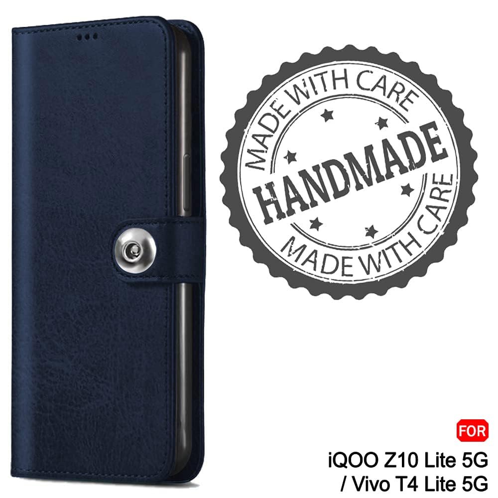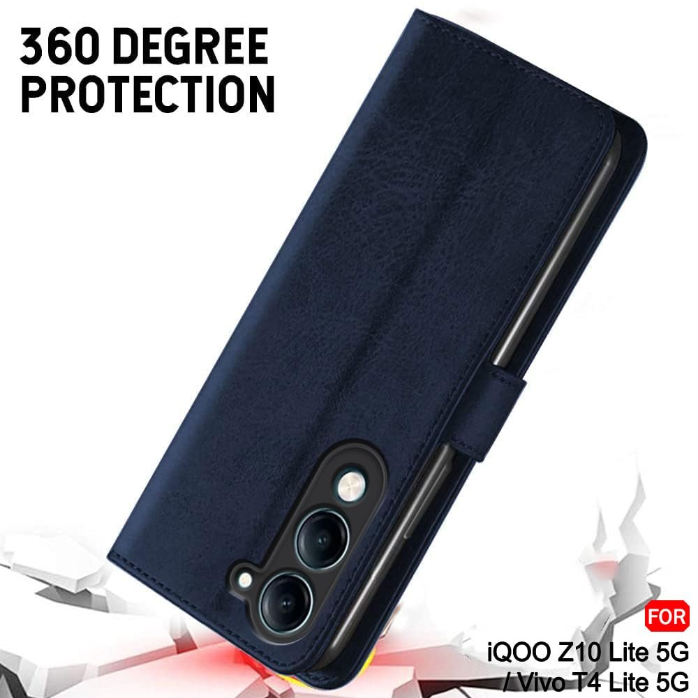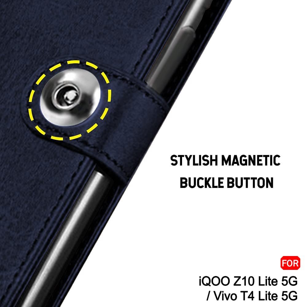 TheGiftKart Flip Cover Back Case for iQOO Z10 Lite 5G / Vivo T4 Lite 5G | Genuine Leather Finish | Designer Button | Inbuilt Pockets & Stand | Wallet Style Flip Back Cover Case (Faux Leather, Blue)