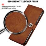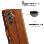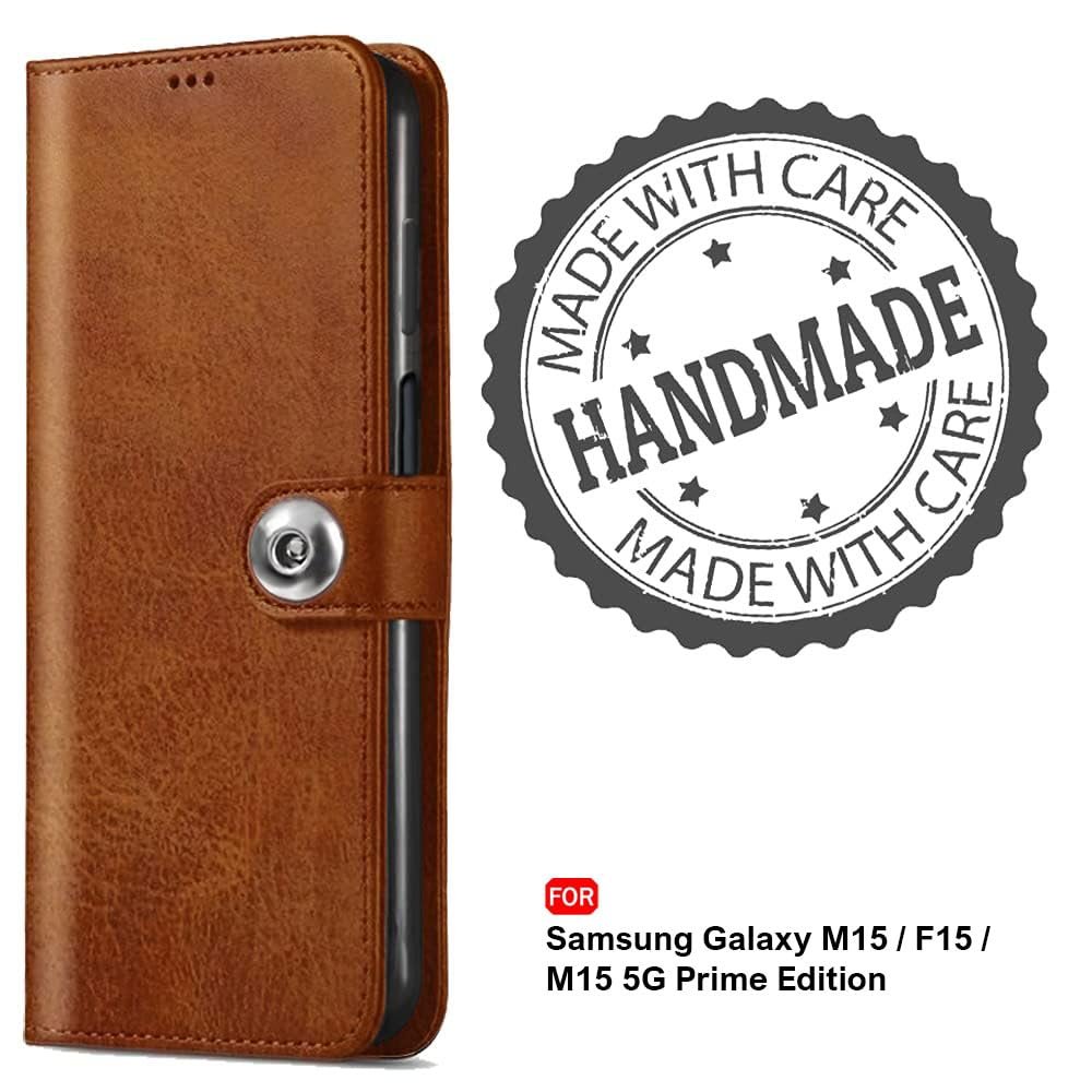 TheGiftKart Flip Cover Back Case for Samsung Galaxy M15 / F15 / M15 5G Prime Edition | Genuine Leather Finish | Designer Button | Inbuilt Pockets & Stand | Flip Back Cover Case (Faux Leather, Brown)