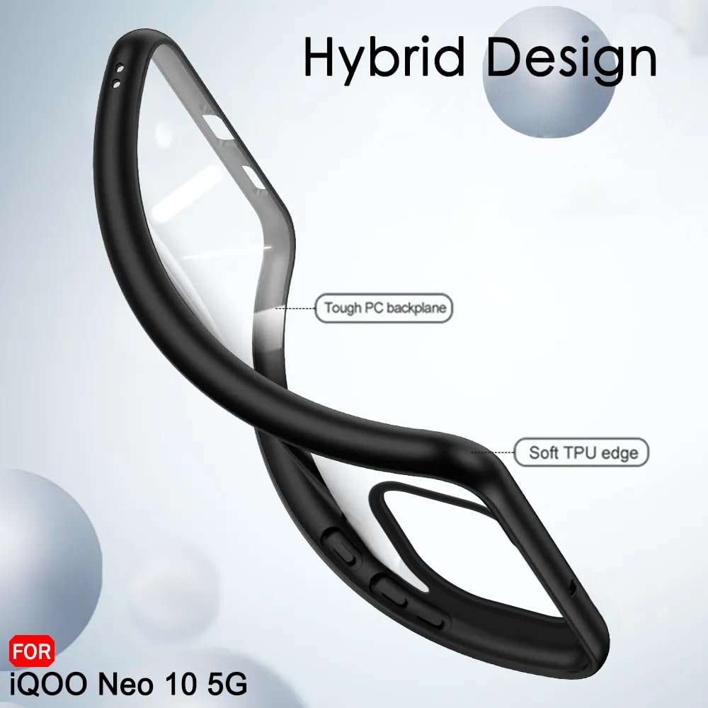 TheGiftKart Hybrid Shockproof Back Cover Case for iQOO Neo 10 5G | Hard Back Cover Case for iQOO Neo 10 5G (PC & TPU, Transparent Clear Back, Black Sides)