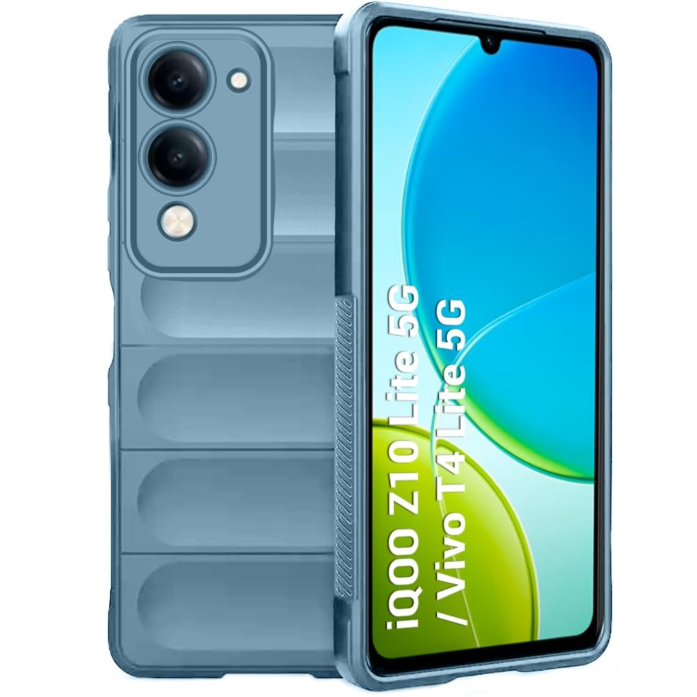 TheGiftKart Liquid Silicon Back Cover Case for iQOO Z10 Lite 5G / Vivo T4 Lite 5G | Shockproof Military Grade Protection | Micro-Fibre Cloth On Inner Side | Built-in Anti-Slip Grip Cover (TPU, Blue)