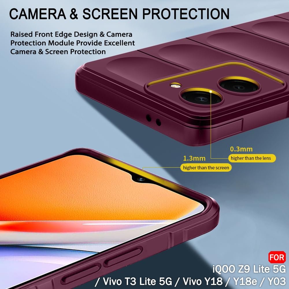 TheGiftKart Liquid Silicon Back Cover Case for iQOO Z9 Lite/Vivo T3 Lite 5G / Y18/Y18e/Y03/Y28s/Y37 | Shockproof Military Grade Protection | Micro-Fibre Cloth On Inside | Anti-Slip Grip (TPU, Plum)