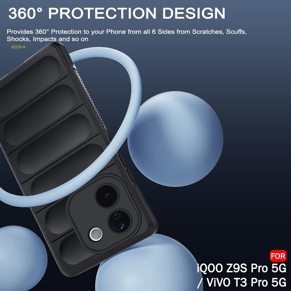 TheGiftKart Liquid Silicon Back Cover Case for iQOO Z9s Pro 5G / Vivo T3 Pro 5G | Shockproof Military Grade Protection | Micro-Fibre Cloth On Inner Side | Anti-Slip Grip Back Cover Case (TPU, Black)