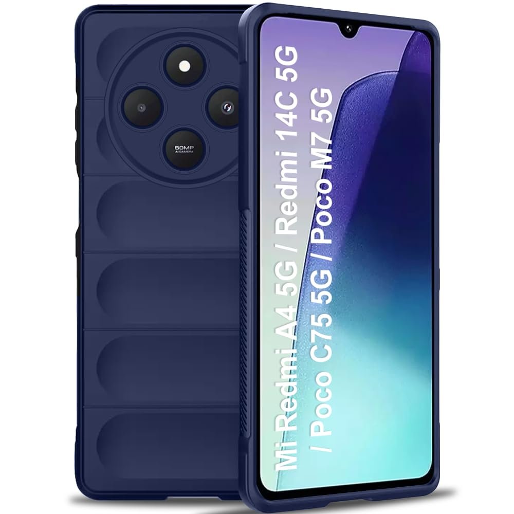 TheGiftKart Liquid Silicon Back Cover Case for Mi Redmi A4 5G / 14C 5G / Poco C75 5G / M7 5G | Shockproof Military Grade Protection | Micro-Fibre Cloth On Inner Side | Anti-Slip Grip Case (TPU, Blue)