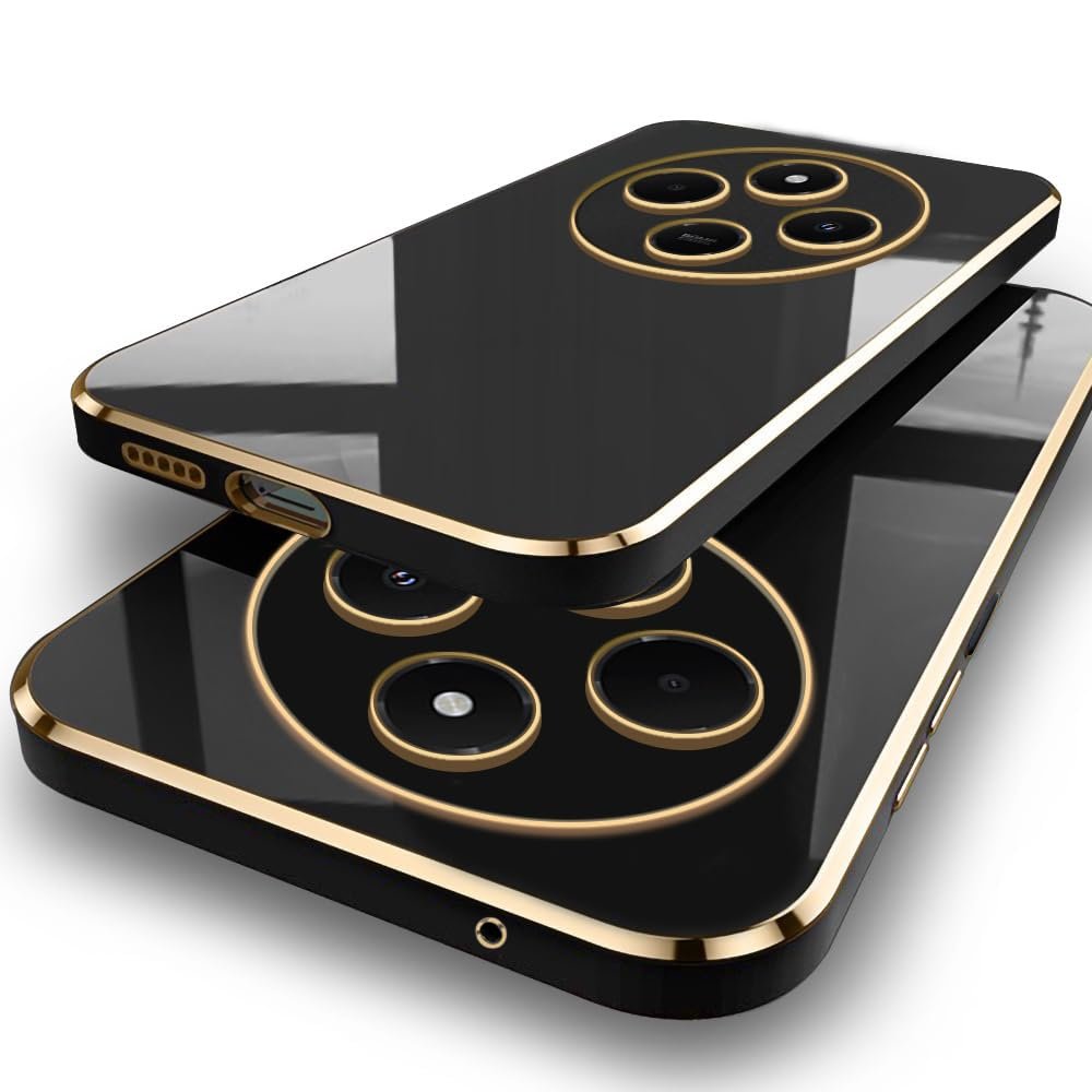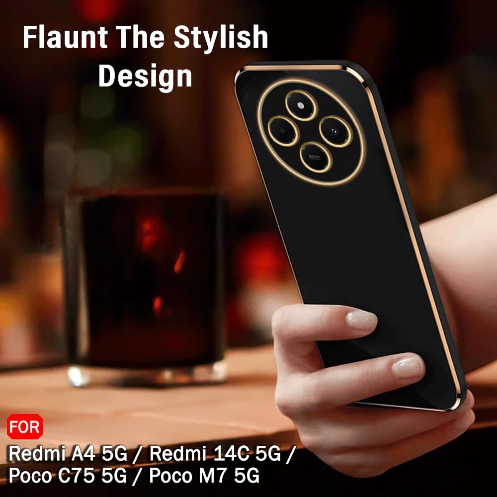 TheGiftKart Luxurious Golden-Plated Back Cover Case for Mi Redmi A4 5G / Redmi 14C 5G / Poco C75 5G / Poco M7 5G | Raised Lips for Camera & Screen Protection | ShockProof Design Back Case (TPU, Black)