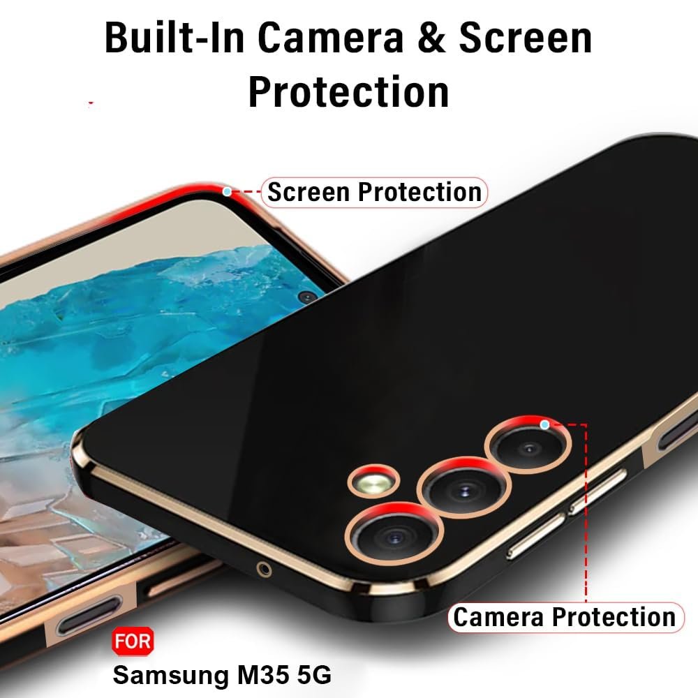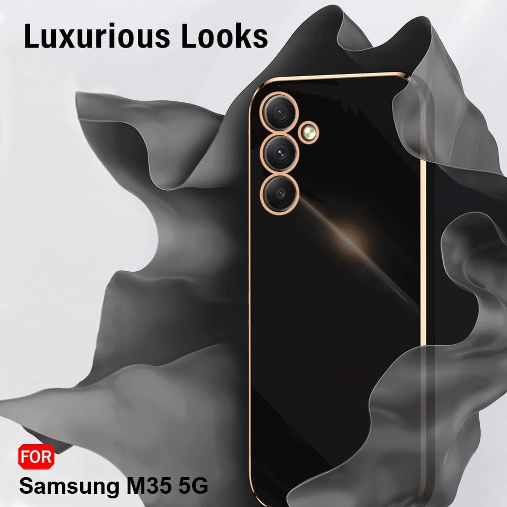TheGiftKart Luxurious Golden-Plated Back Cover Case for Samsung Galaxy M35 5G | Raised Lips for Camera & Screen Protection | ShockProof Design | Stylish Back Cover Case for Samsung M35 5G (TPU, Black)