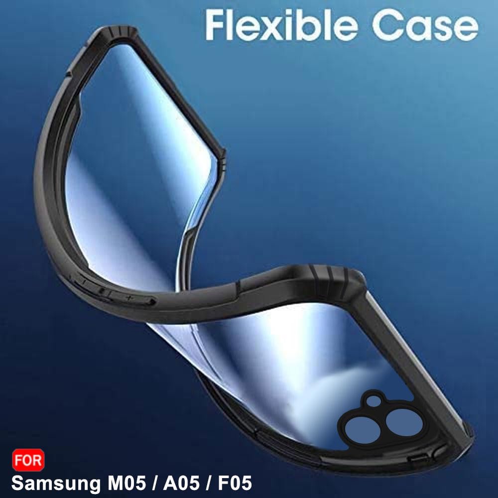 TheGiftKart Shockproof Crystal Clear Back Cover Case for Samsung Galaxy M05 / A05 / F05 | 360 Degree Protection | Protective Design | Transparent Cover for Samsung M05 / A05 (PC & TPU, Black Bumper)