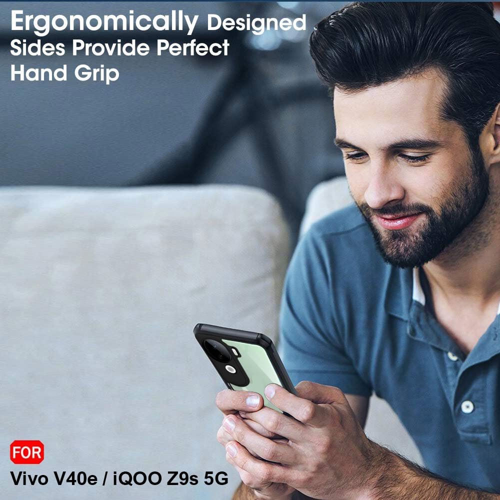 TheGiftKart Shockproof Crystal Clear Back Cover Case for Vivo V40e / iQOO Z9s 5G | 360 Degree Protection | Protective Design | Transparent Back Cover for Vivo V40e / iQOO Z9s (PC & TPU, Black Bumper)