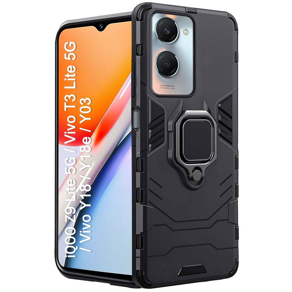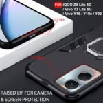 TheGiftKart Tough Armor Bumper Back Case Cover for iQOO Z9 Lite/Vivo T3 Lite 5G / Vivo Y18 / Y18e / Y03 / Y28s / Y37 | Ring Holder & Kickstand in-Built | 360 Degree Protection Back (PC & TPU, Black)