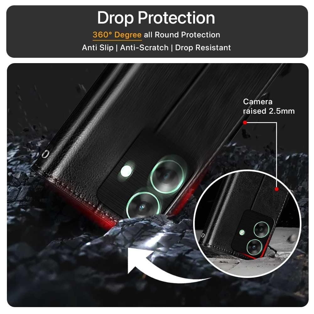 PRACTICAL STYLISH DESIGN – With 3 cardholder slots and a cash pocket, you can easily carry your ID, credit cards, driver’s license, and cash. The stand function is perfect for video chatting and watching films, adding convenience to your daily use.PRECISE CUSTOUTS – This case offers easy access to all ports, controls, and buttons without needing to remove it. It’s designed for easy installation and removal, ensuring a hassle-free experience.PREMIUM MATERIAL – Crafted from premium leather and a durable TPU inner bumper, the case provides a comfortable touch and a pleasing look. The reinforced stitching enhances durability and adds an extra layer of protection.360 DEGREE PROTECTION – The case covers all sides and corners of your phone, safeguarding it from dust, scratches, bumps, and daily wear and tear. The strong hidden magnetic closure keeps the case securely closed, offering perfect screen protection.MADE FOR – Designed and Handcrafted Flip Mobile cover for – Realme Narzo N61 | Realme C61