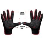 Touchscreen Winter Gloves with Anti-Slip Grip, Black and Blue Trim, Mesh Pattern Design