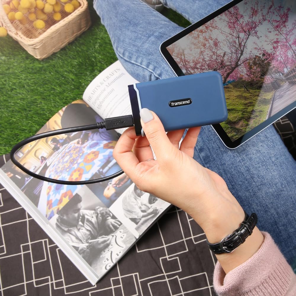 About this item USB 3.1 Gen 2 interface with the support of UASP (USB Attached SCSI Protocol) Transfer speeds up to 1,050 MB/s 3D NAND flash memory Ruggedized silicone rubber case in an elegant navy blue A USB Type-C cable and a USB Type-C to Type-A cable included