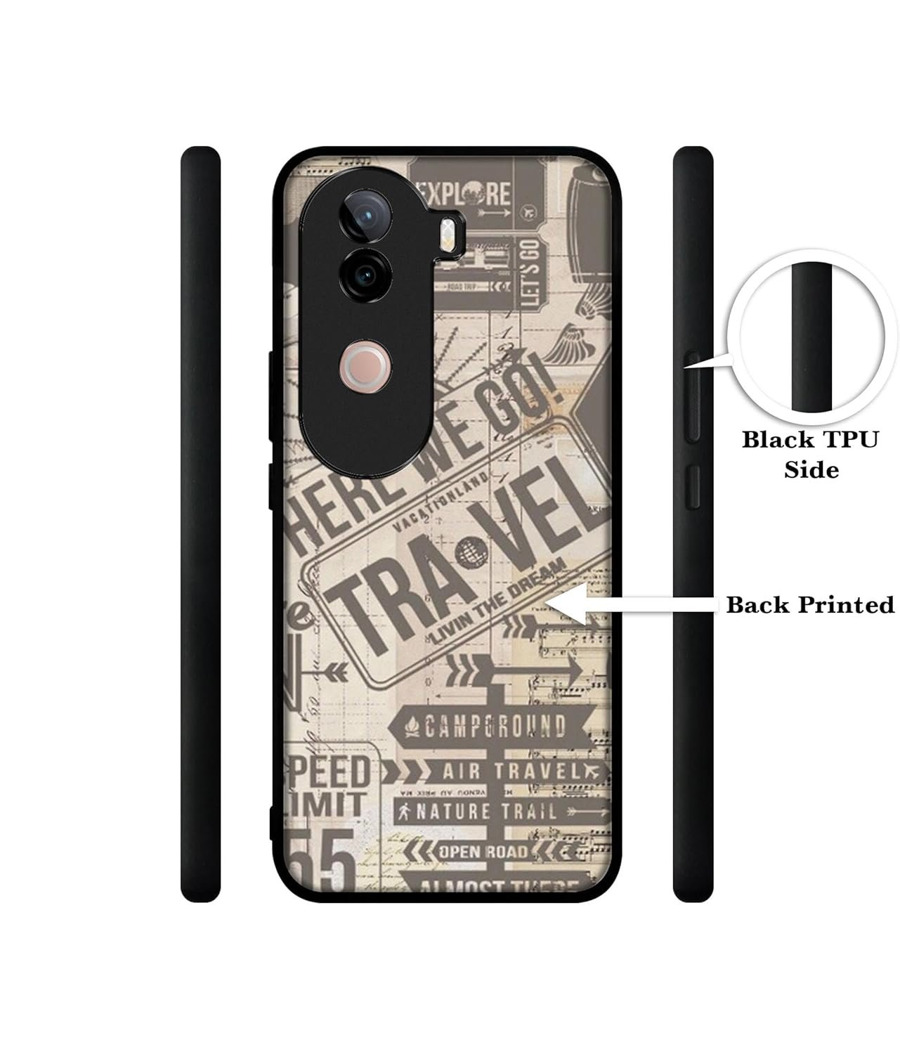 Travel Design Premium 2D Printed Metal Back Case Cover for Vivo V40E 5G / Iqoo Z9S 5G, Multicolor