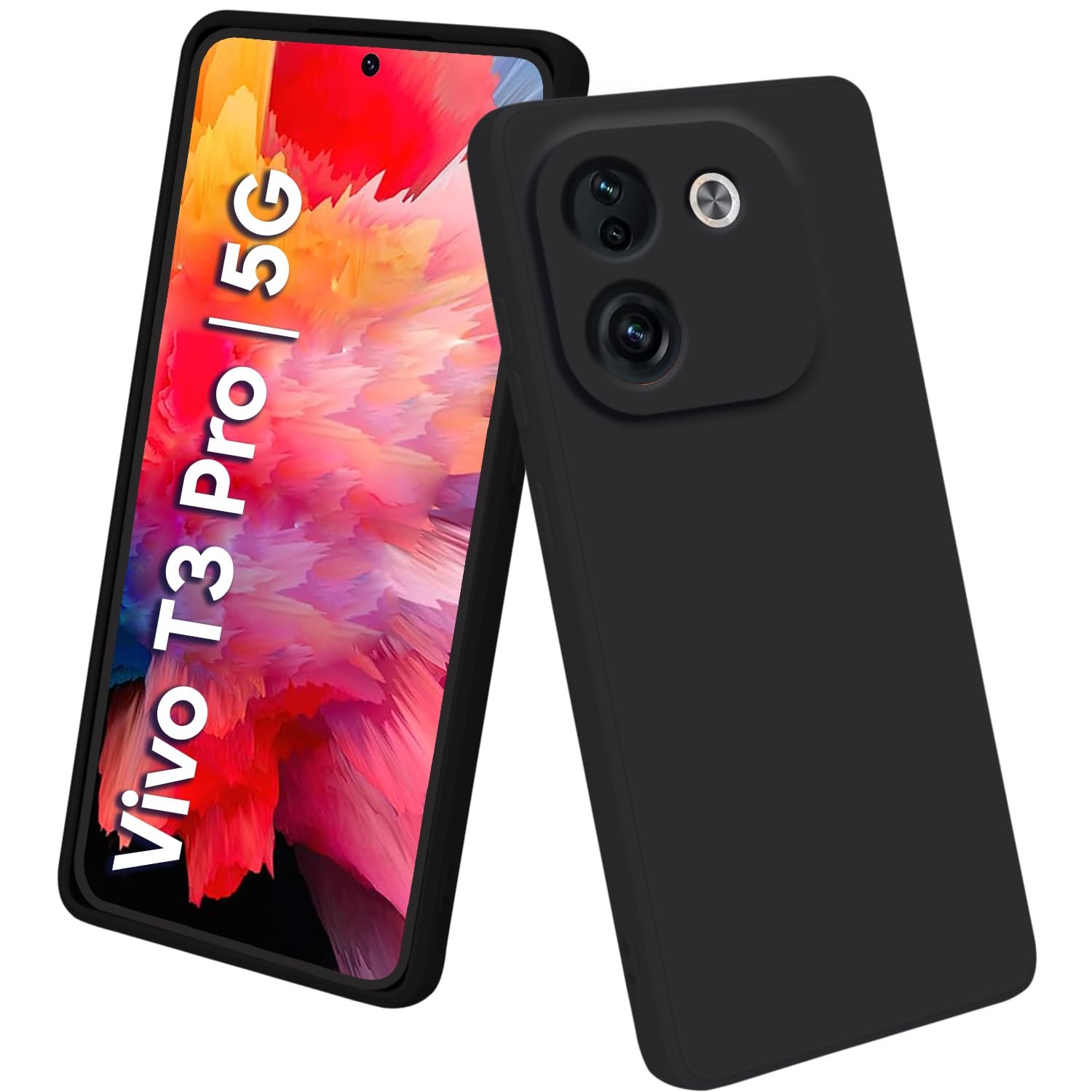 TRUEUPGRADE Liquid Silicone Designed Back Case Cover for iQOO Z9s Pro 5G / Vivo T3 Pro 5G | Microfiber Inside, Full Protection | Bumper Back Cover Case for iQOO Z9s Pro 5G / Vivo T3 Pro 5G – Black
