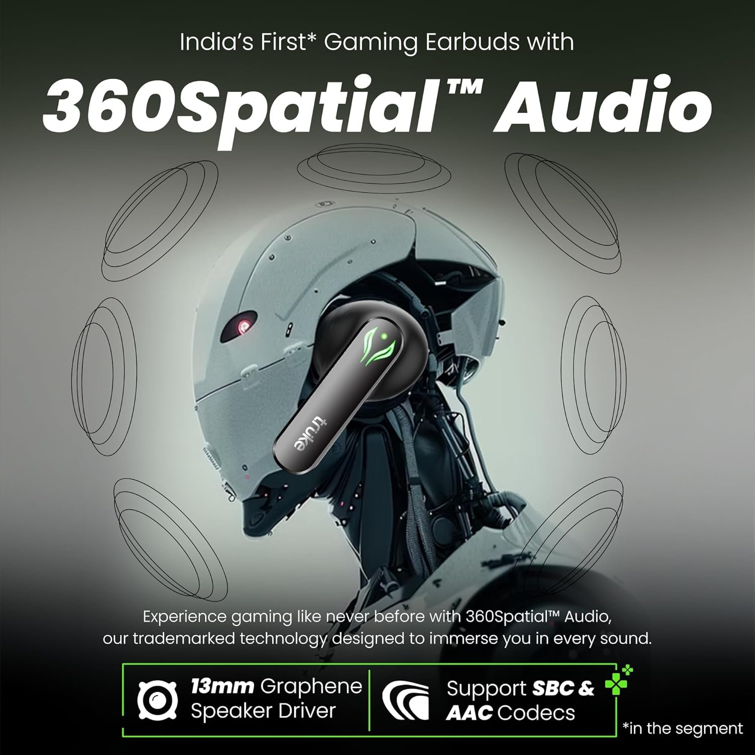 🌐 360Spatial Audio : Experience gaming like never before with 360Spatial Audio, our trademarked technology designed to immerse you in every sound. Powered by a 13mm graphene speaker driver, enjoy rich, detailed audio that surrounds you from every angle. With support for SBC & AAC Codecs, every sound is transmitted with clarity and precision, ensuring an unparalleled gaming experience that transports you into the heart of the action.