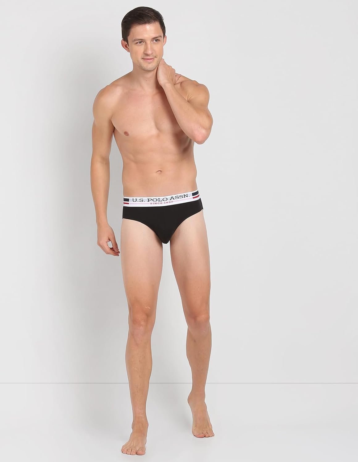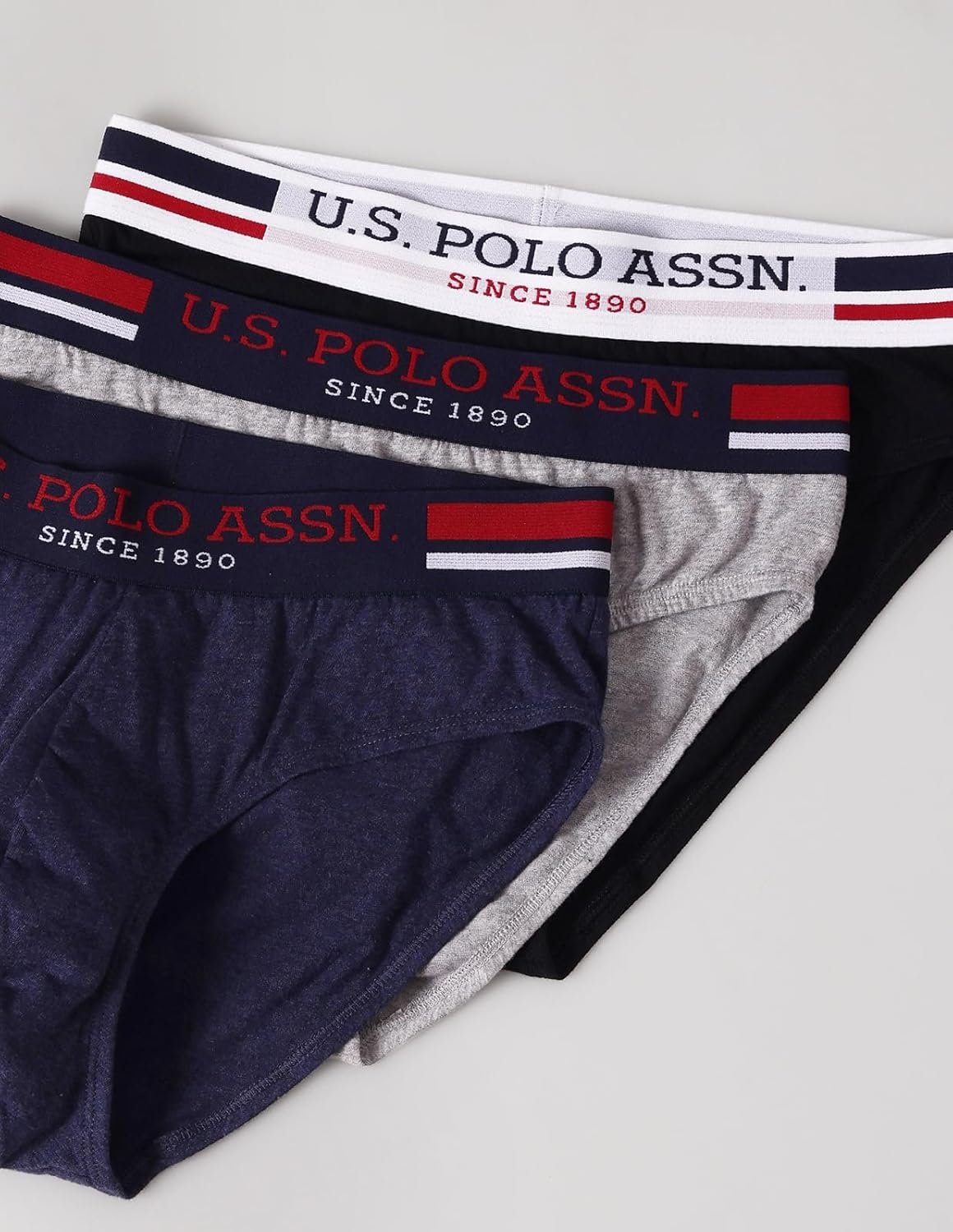 U.S. POLO ASSN. Mens Elasticized Waist Pure Cotton I006 Briefs – Pack of 3