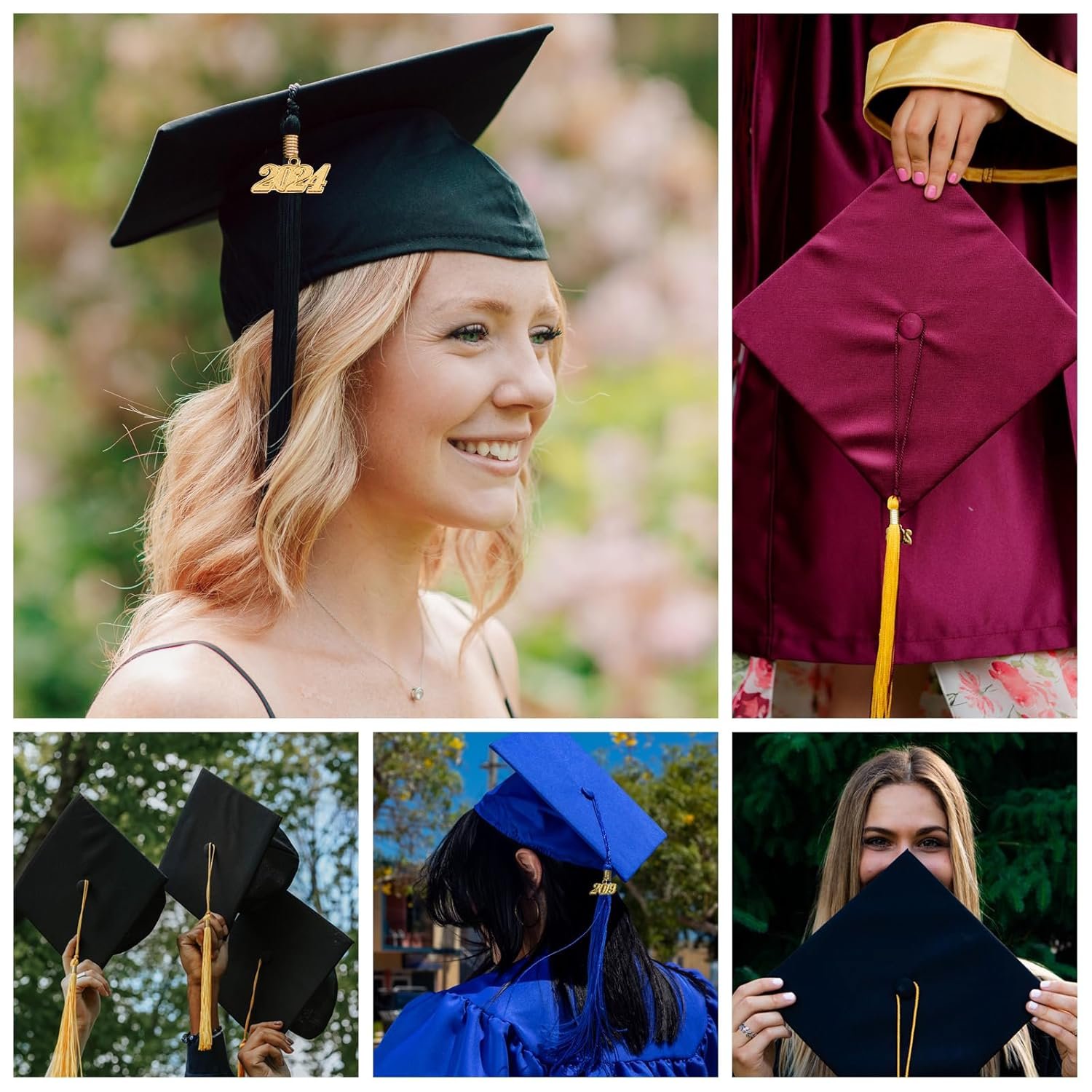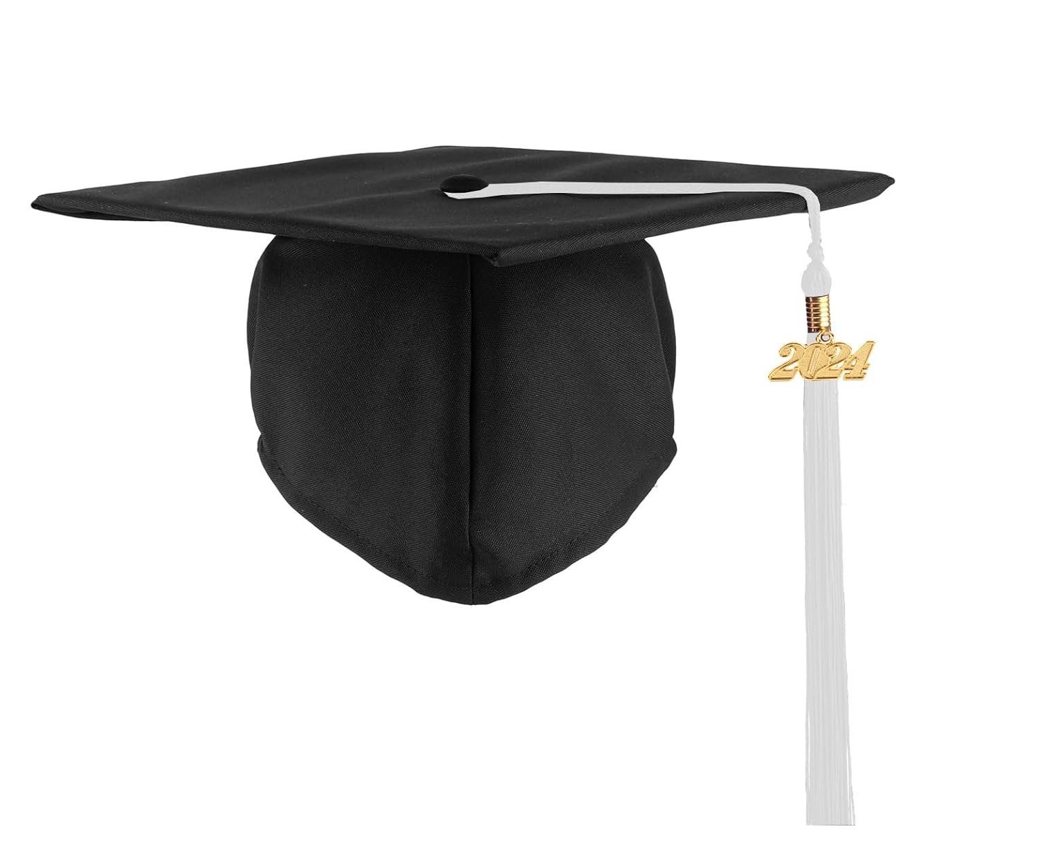 UIALECG Unisex Adult Matte Black Graduation Cap with White Tassel 2024 for High School and College, 12 Colors