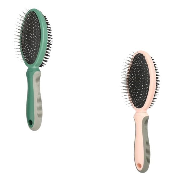 2 IN 1 DESIGN PETS HAIR BRUSHOur 2 IN 1 hair brush is very convenient to have the side and the pin side in brush instead of having to deal with 2 separate brushes. The pin side is sturdy and brushes through most tangles and the side is nicely spaced so you can easily remove any hair