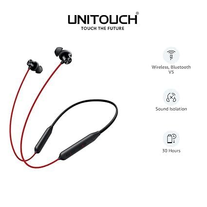 Unitouch Bluetooth Wireless in Ear Earphones Compatible with One.Plus Bullets Z2 with Mic, Bombastic Bass, 10 Mins Charge – 20 Hrs Music, 30 Hrs Battery Life (Acoustic Red)