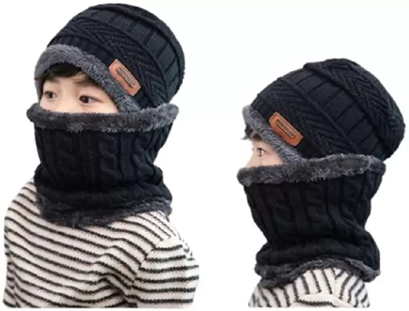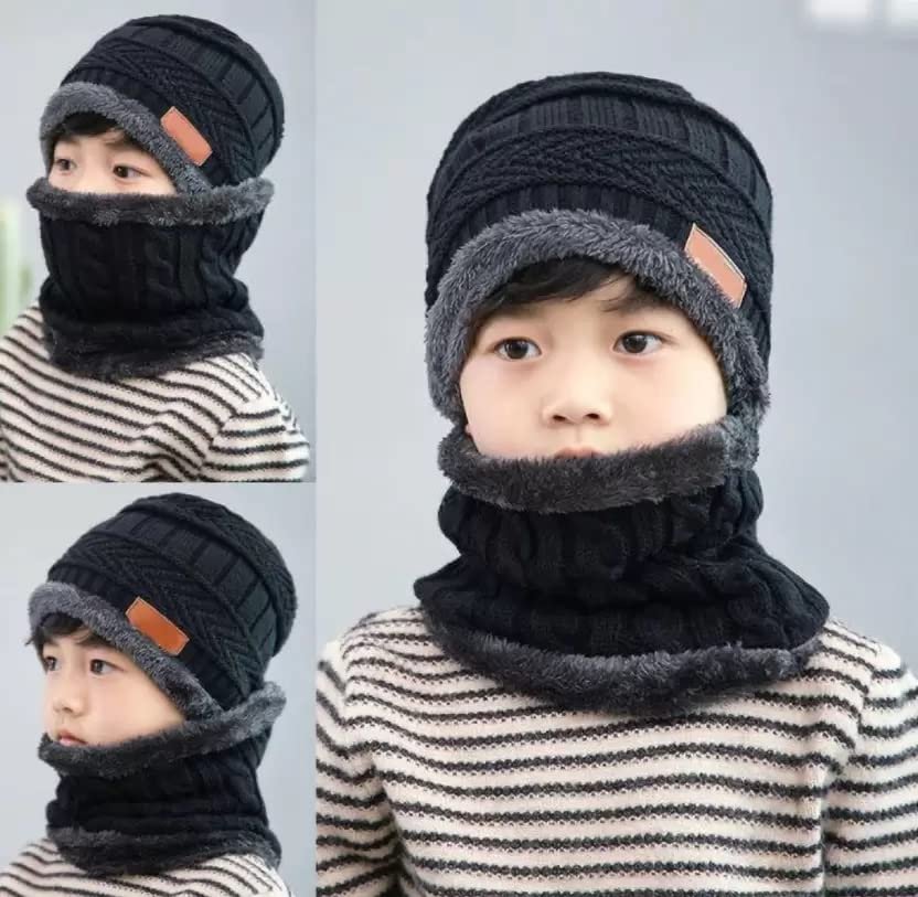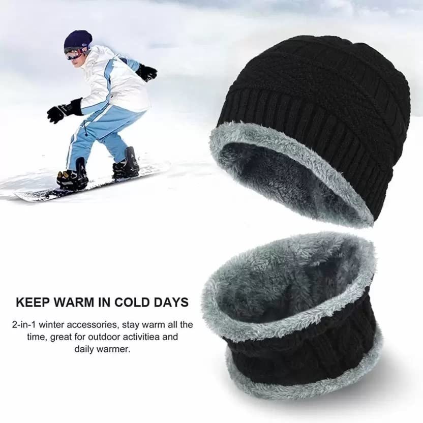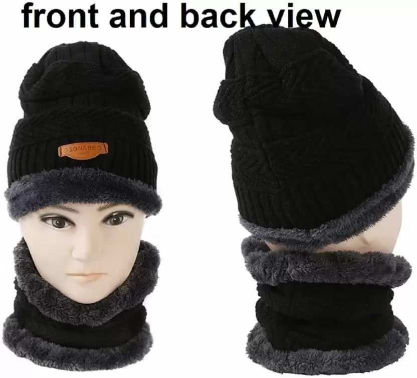 VAGMI Winter Woolen Warm Unisex Beanie Knit Skull Hat with Scarf Set for Men & Women Premium Cap – Black (2 Piece)