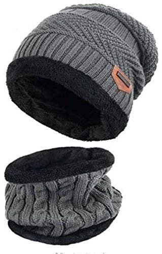 VAGMI Winter Woolen Warm Unisex Beanie Knit Skull Hat with Scarf Set for Men & Women Premium Cap – Grey (2 Piece)