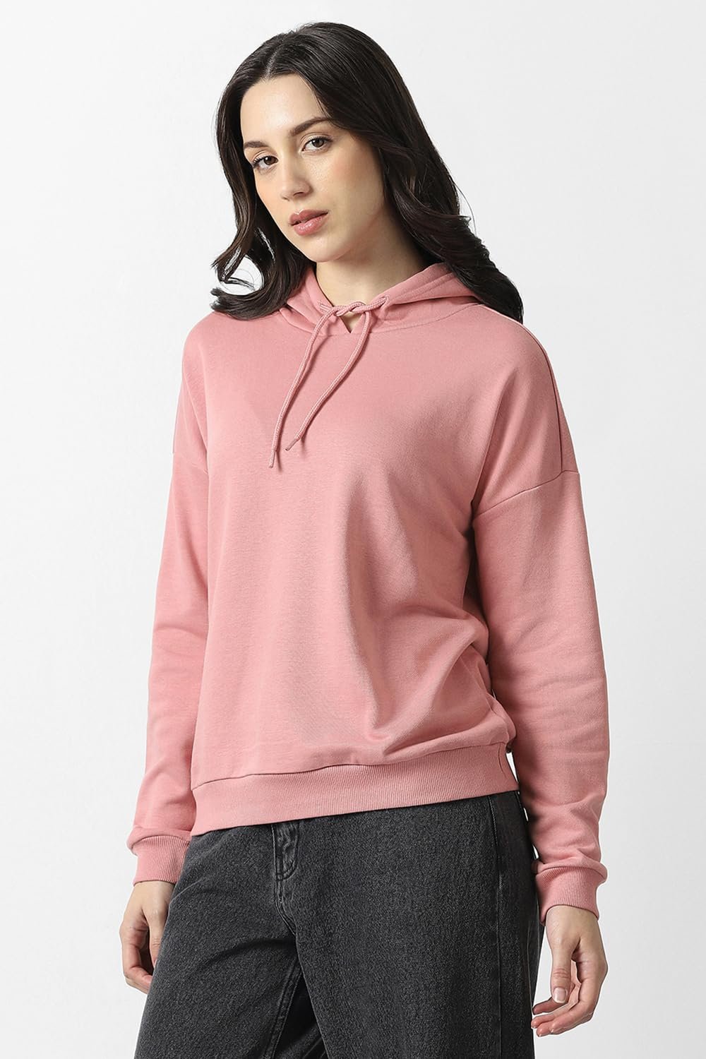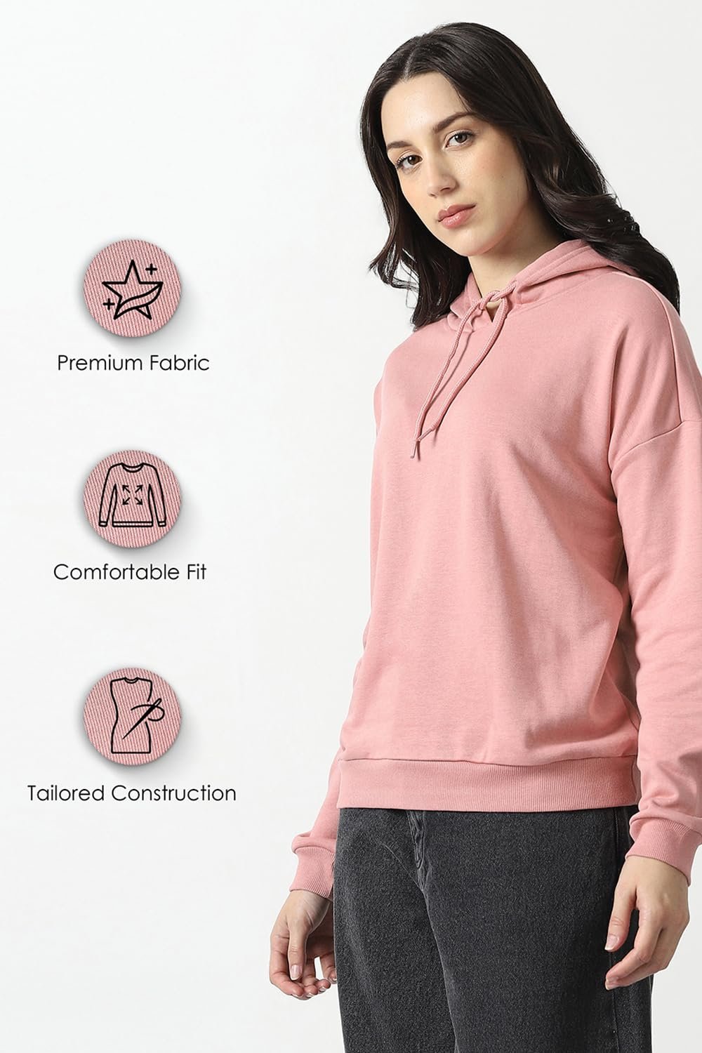 Van Heusen Women’s Hooded Solid Sweatshirt| Full Sleeve Ribbed Hem Casual winterwear