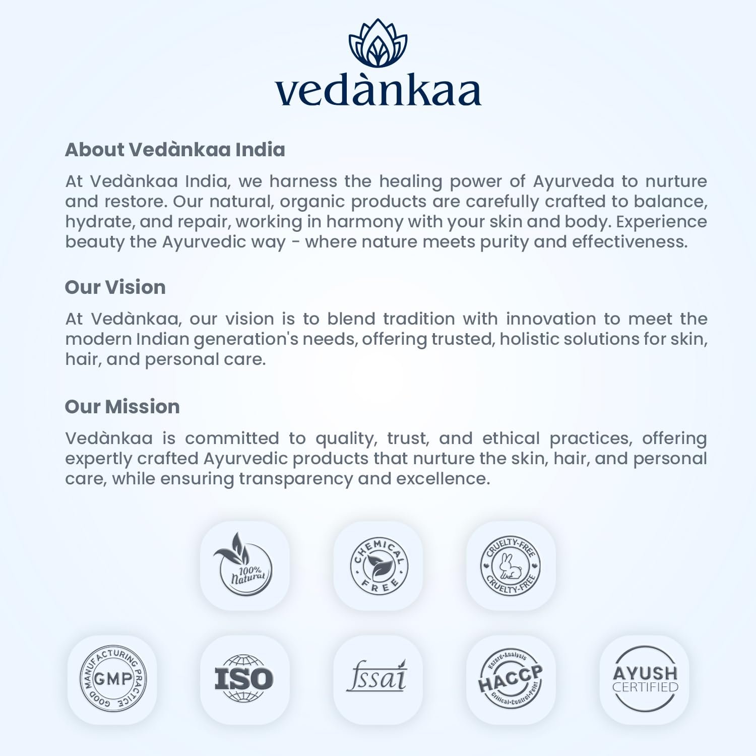 Why vedànkaa – We Offer – Premium Qaulity | 100% Natural | Ayurvedic Formulation | Chemical Free Products