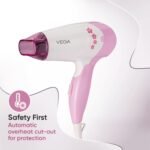 VEGA Insta Glam Foldable 1000-1200Watts Hair Dryer for Men & Women, 2 Heat & 1 Speed Settings (Low & High), Perfect Blow Dry & Style, Compact Hair Dryer for Travel & Home Use (VHDH-20) Made In India