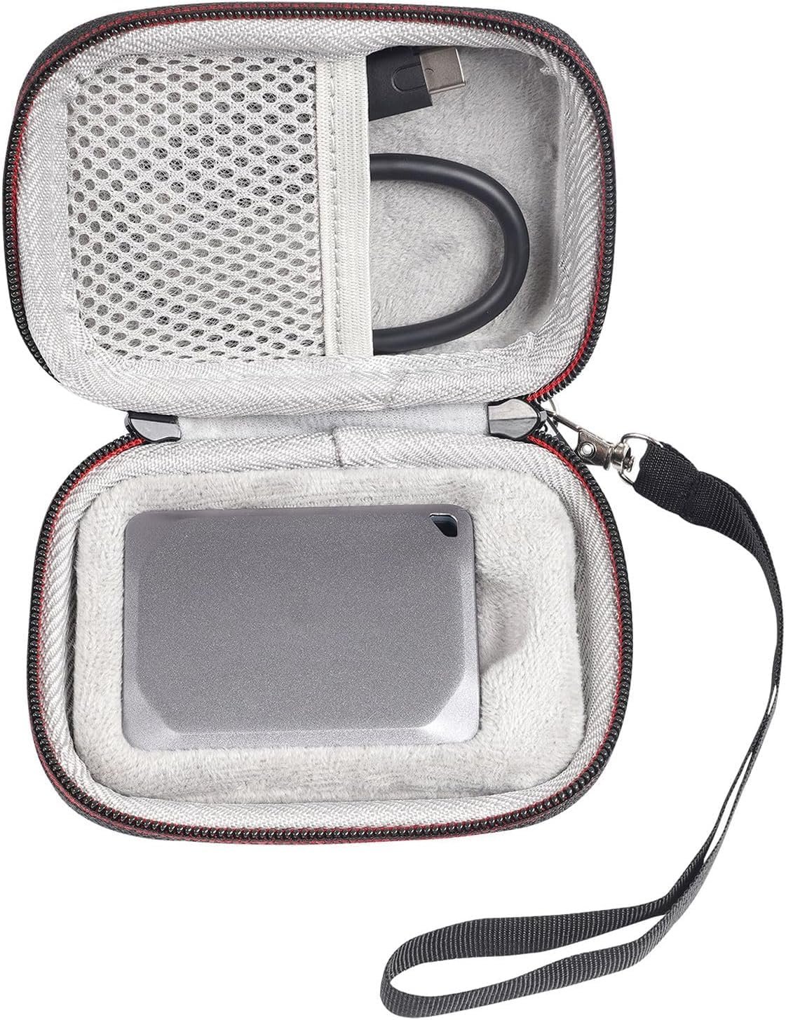 Portable hard drive case made of EVA materials-shockproof, scratch proof, water-resistant and comfortable pu leather finishing. Protect for SSD against damage, keep’s new and prolong the life of the SSD.
