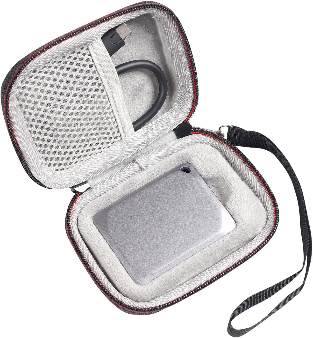 Tailor-made box with nice cut inner supporter, fits for Samsung more stable. Extra shockproof layer and elastic band make for more stable and safety. Unique finger grooves allows you easy to put in and take out the ssd. Strong and smoothly zipper more luxury and safety.