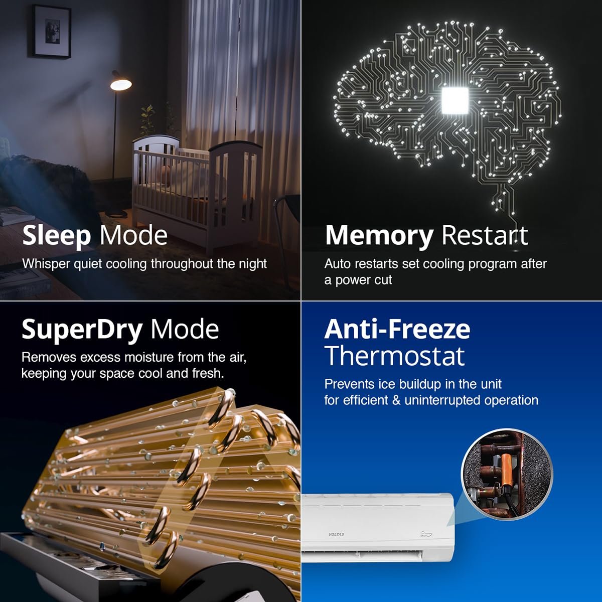 With wide voltage range operation, this Voltas AC can function efficiently even during voltage fluctuations. This prevents damage caused by unstable power supply.