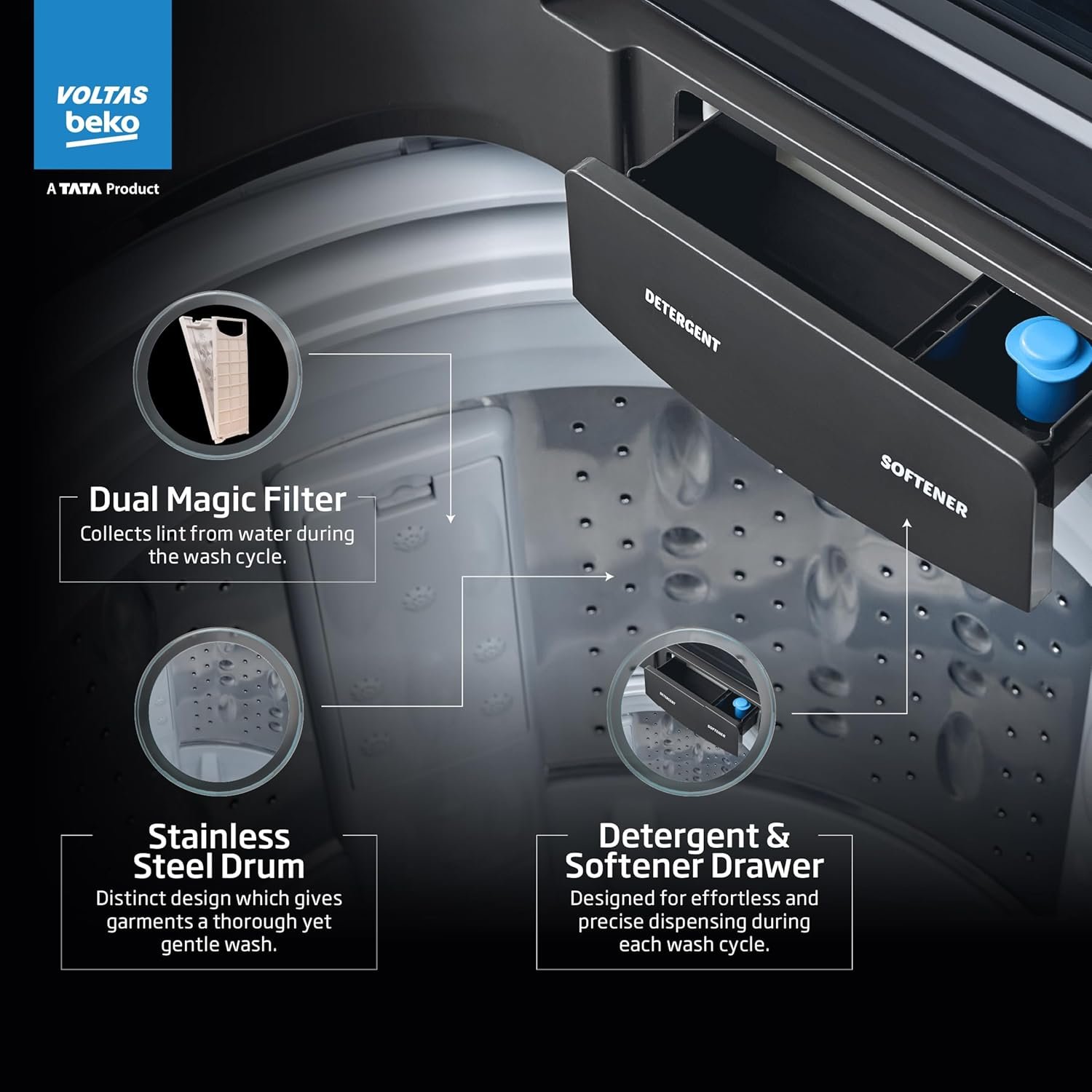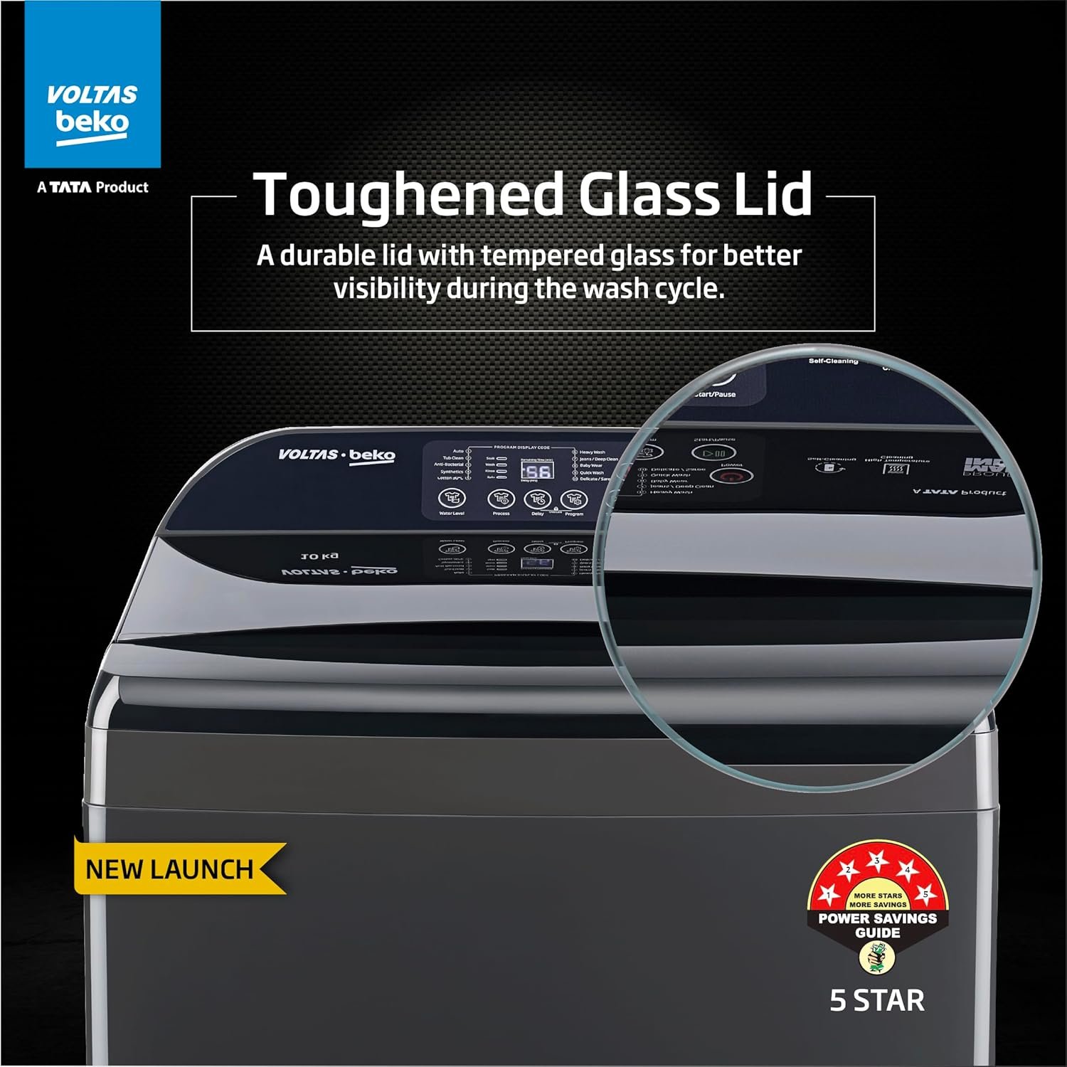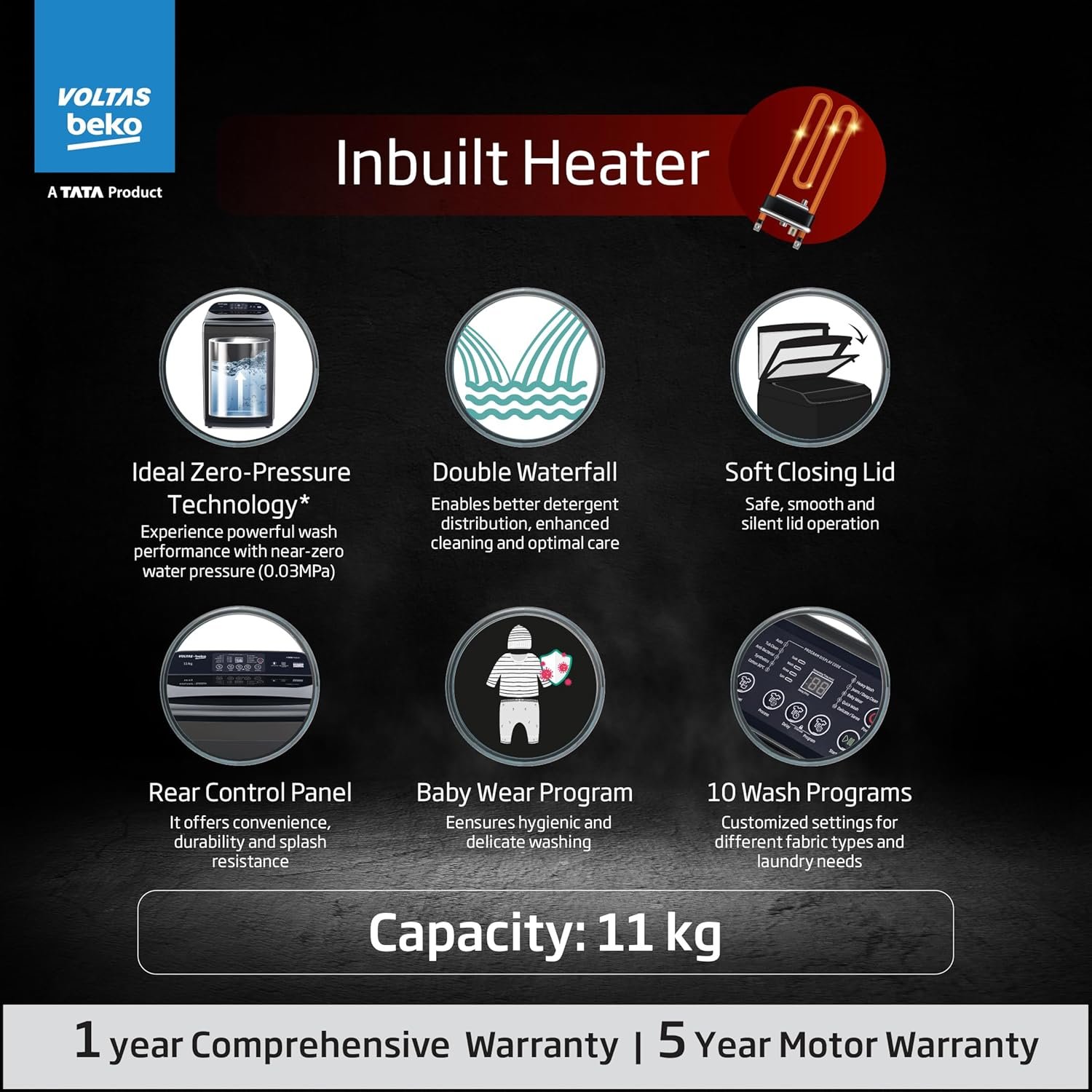 Voltas Beko, A Tata Product 11 Kg 5 Star Fully-Automatic Top Loading Washing Machine (WTL1106UEAH / OBS3060, Dark Grey, Inbuilt Heater)