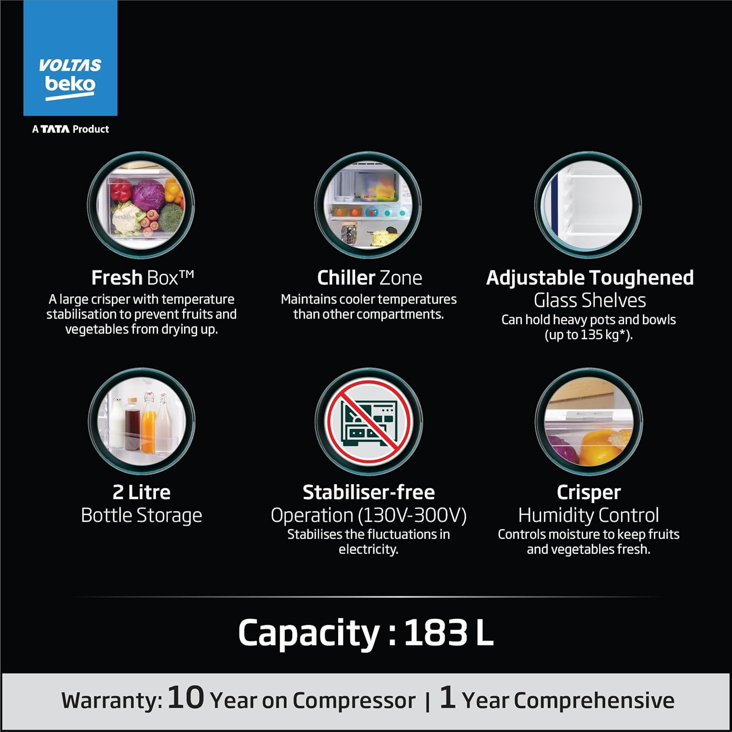 Voltas Beko, A Tata Product 183 L 3 Star Direct Cool Single Door Refrigerator (RDC215C/S0BFR0M0000GO, Fressia Blue, With Fresh Box Technology and Chiller Zone)