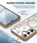 VONZEE Compatible with Samsung Galaxy S24 5G Case Luxury Retro Flowers Floral Clear for Magnetic Wireless Charging Case Shockproof Case PC+TPU Cute Glossy Shiny Cover for Girls Women, Desert Titanium