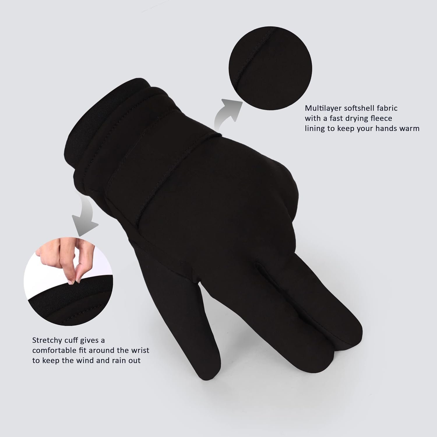WRIST DESIGN – Double shirred elastic wrist keeps the glove closed around your skin and keeps dirt, debris, snow and cold wind out in winter outdoor sports. Keep your hands warm as much as possible.