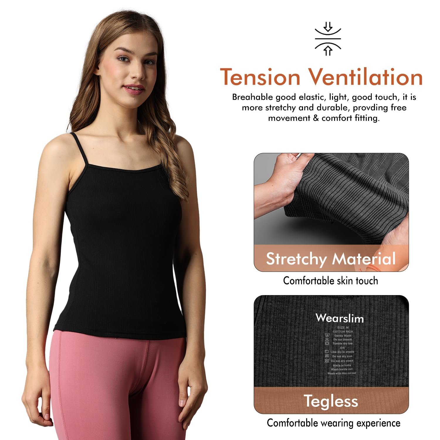 Wearslim® Women’s Cotton Quilted Winter Lightweight Thermal Underwear, Long Johns Bottom and Spaghetti Set with Fleece Lined Soft Warmer